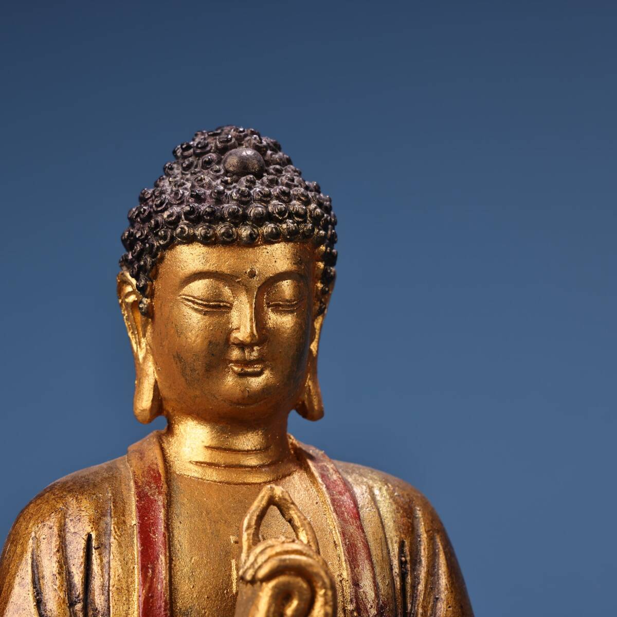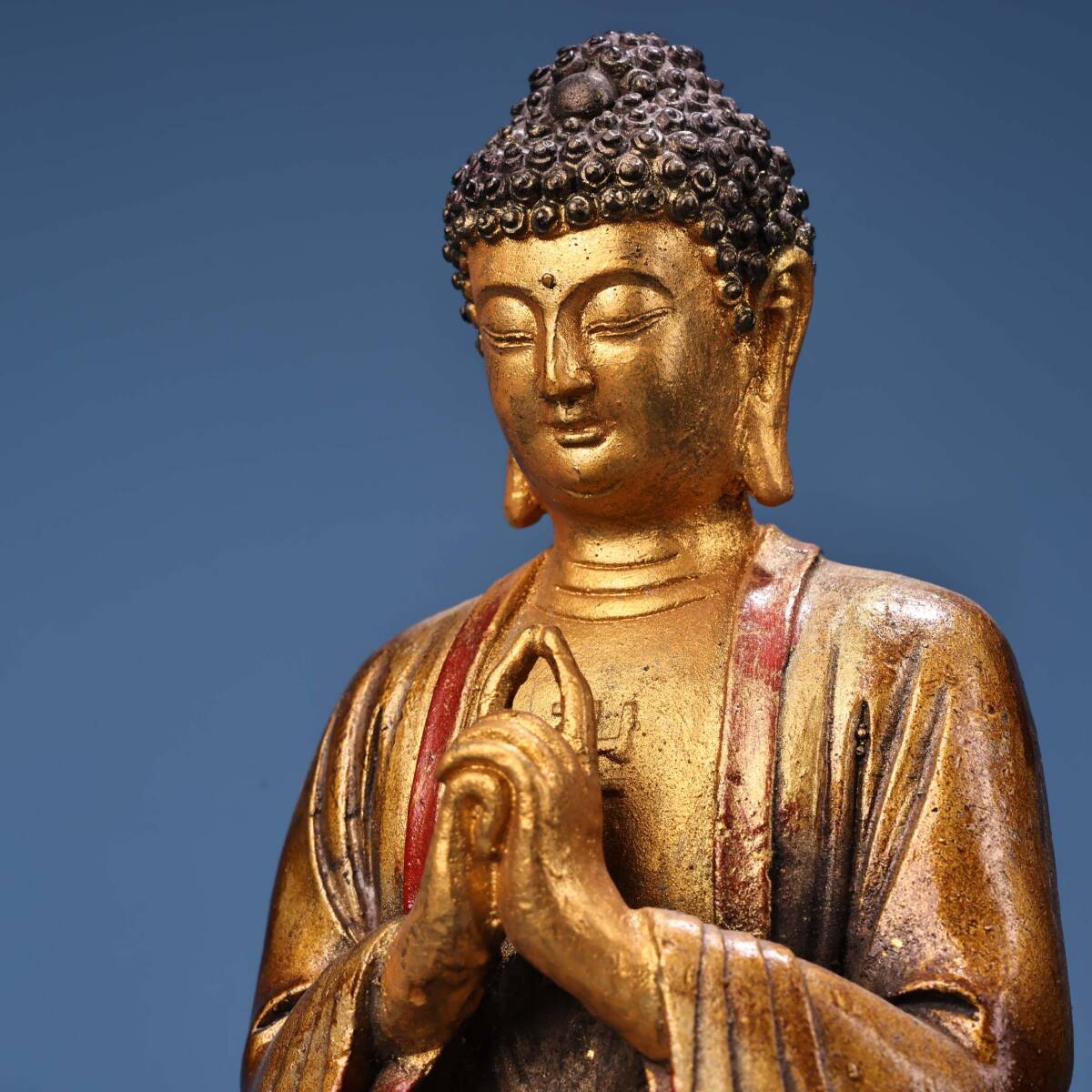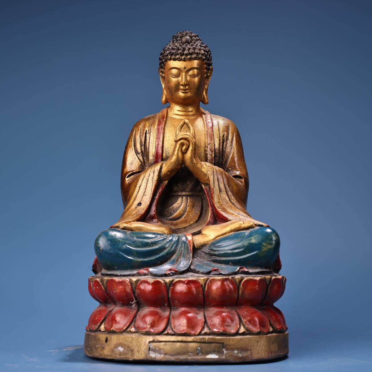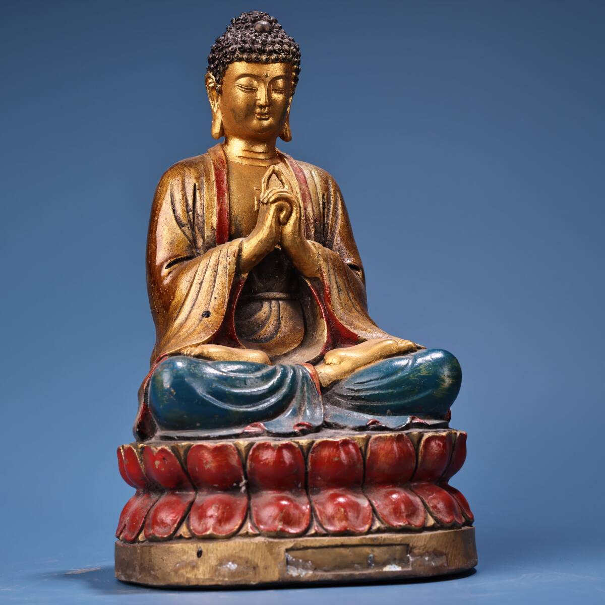 【超珍館蔵】銅製 描金 彩繪 釋迦牟尼像 仏像 宗教 古賞物 古董品 古美術品 時代物 旧家蔵出 稀少珍蔵品