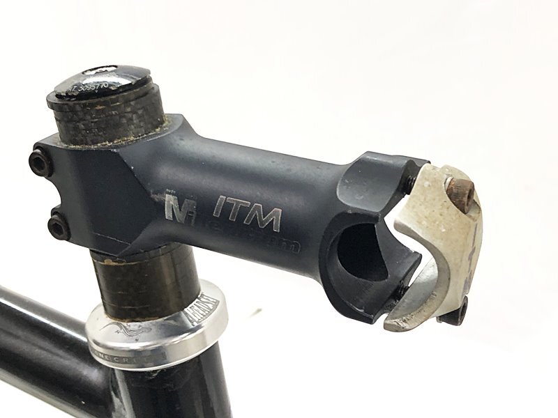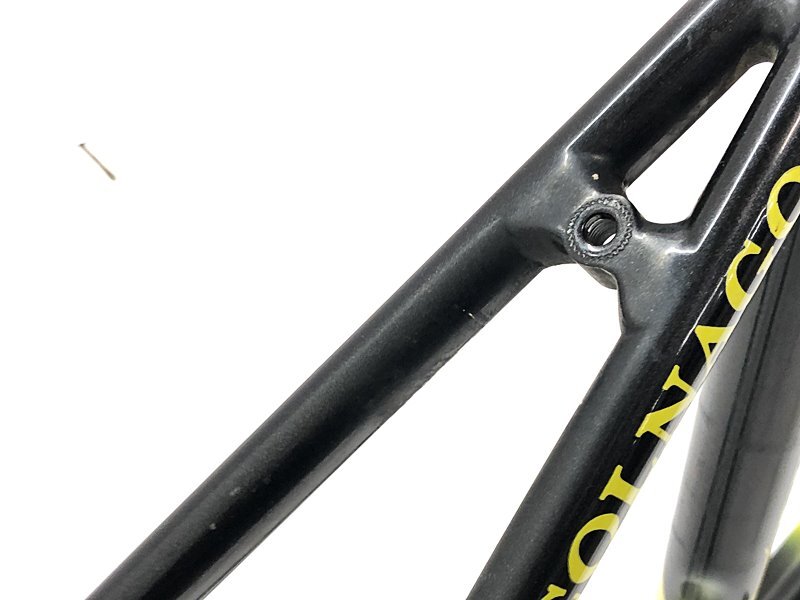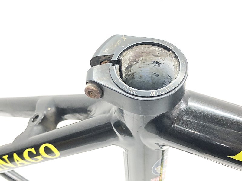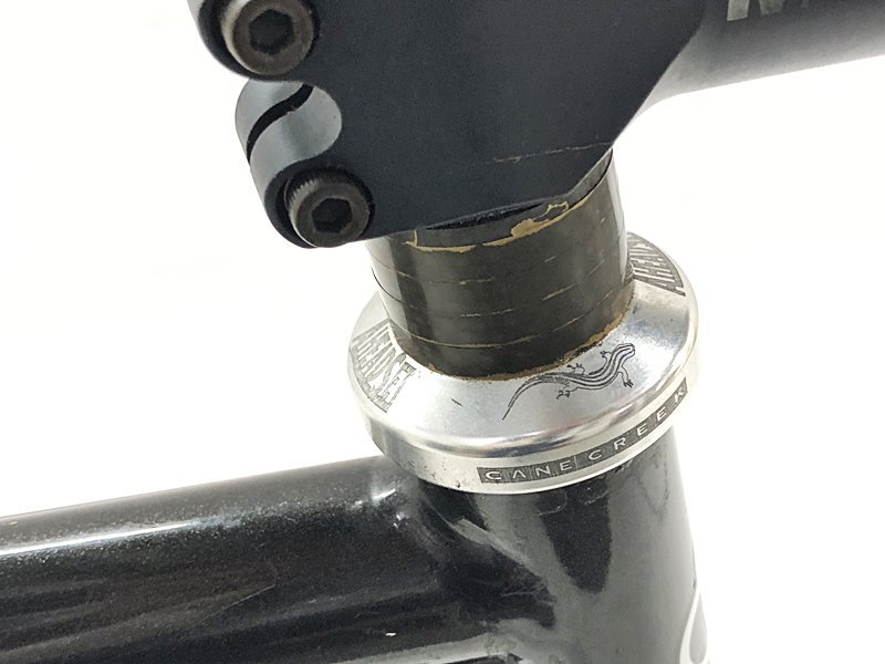 全体的にキズ、汚れが目立ち、経年劣化、使用感を感じます。ステムが錆びにより固着しており、コラムから動きません。ボルト類のサビも目立ちます。トップチューブのブレーキアウター受けに、アウターカップが固着しています。ヘッドは回転しますが。やや抵抗があります。