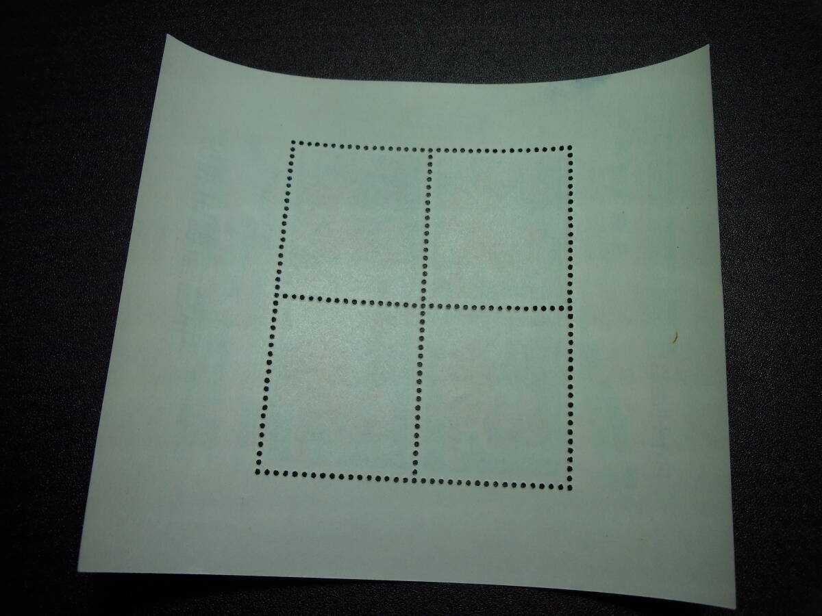 この頃の切手は丸まりやすいので目打ち離れ、折れをおこしやすいです。また、この頃の切手はグラビア印刷の特徴としてヒビ