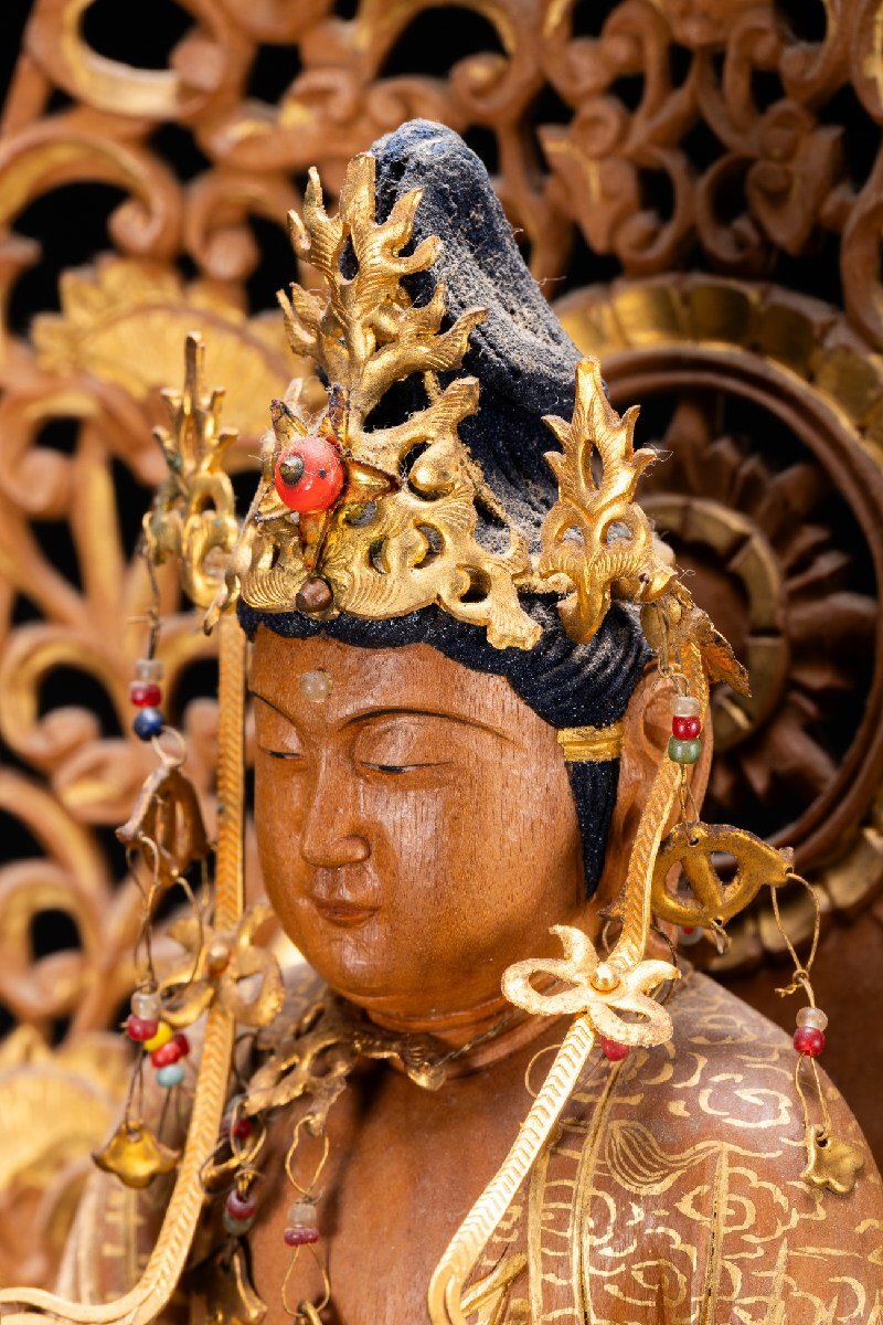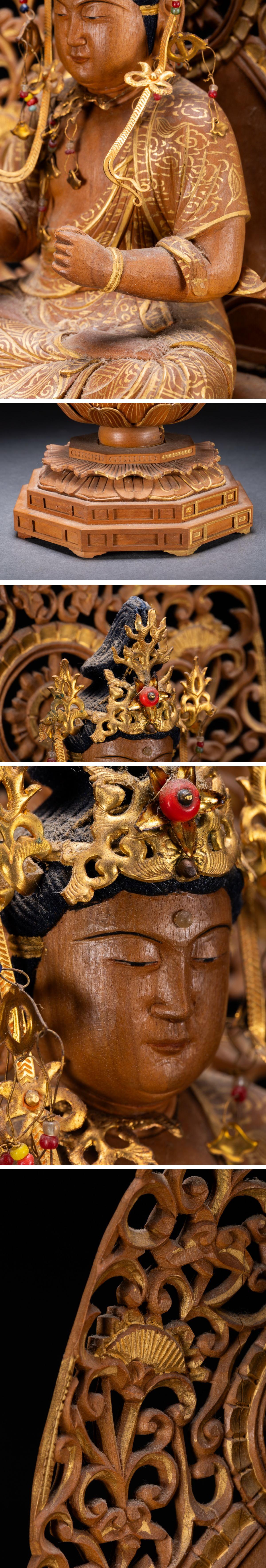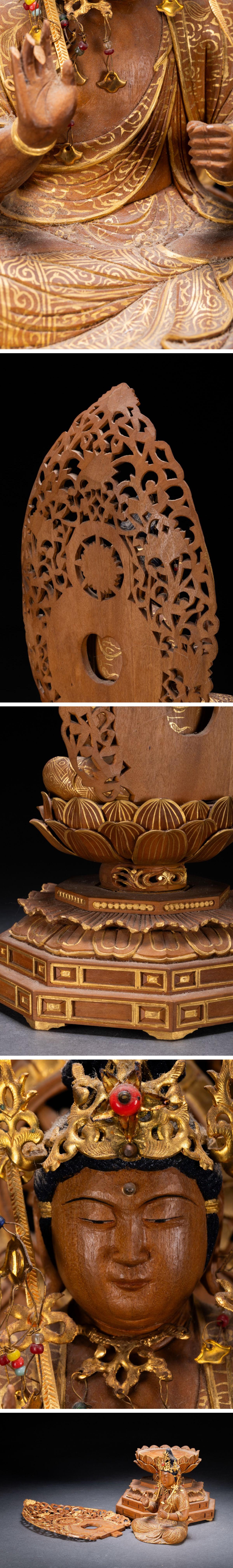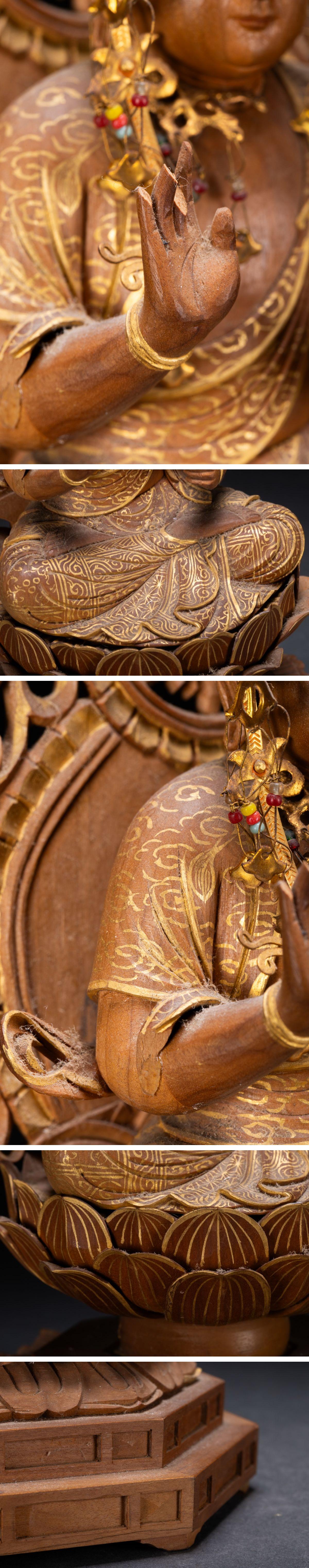 【雲錦】某有名オークション購入 時代物 総白檀 観音菩薩造像 指折れあり 古置物 古美術 時代コレクション7L8-142S2