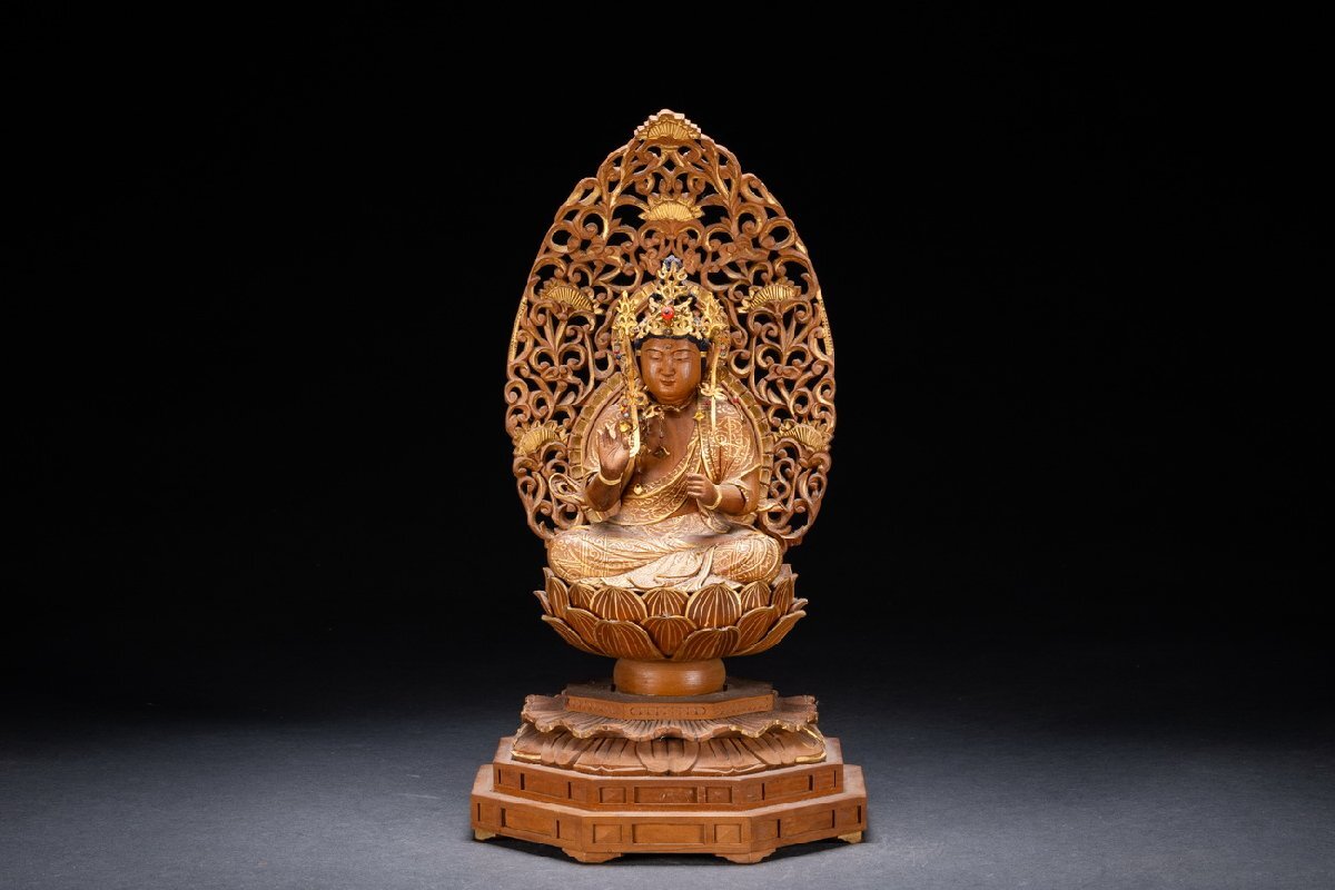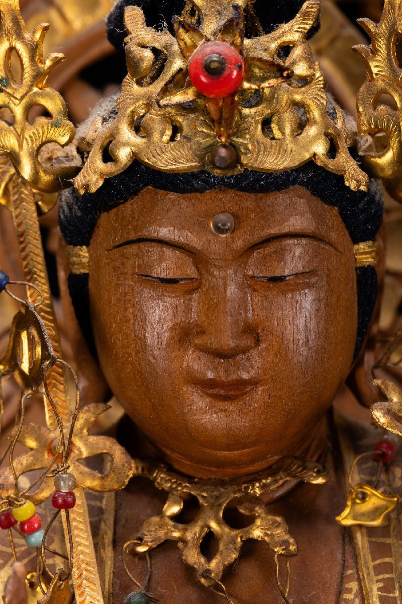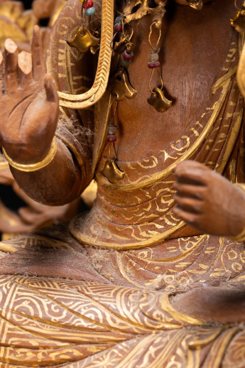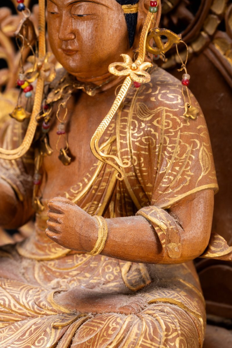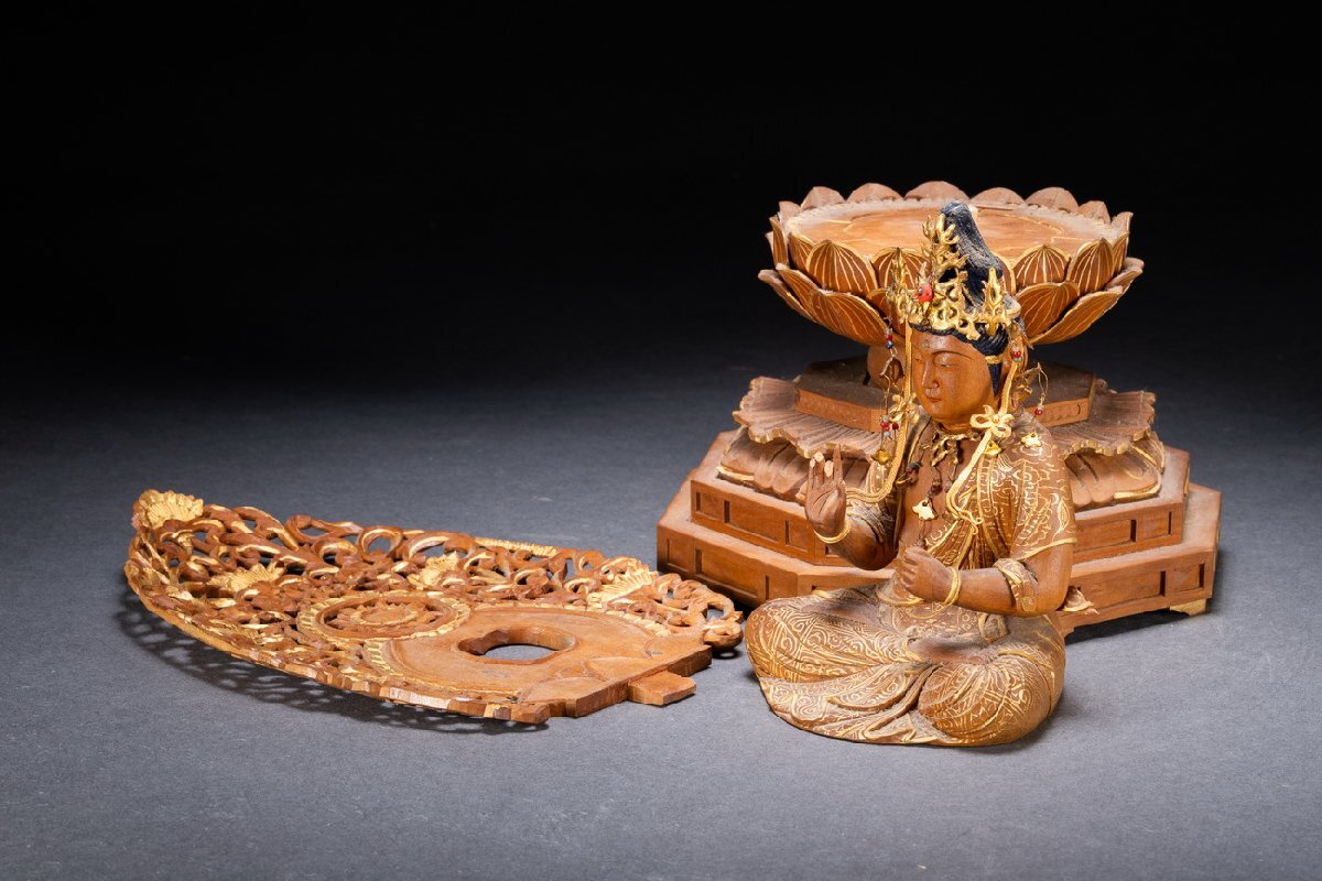 【雲錦】某有名オークション購入 時代物 総白檀 観音菩薩造像 指折れあり 古置物 古美術 時代コレクション7L8-142S2