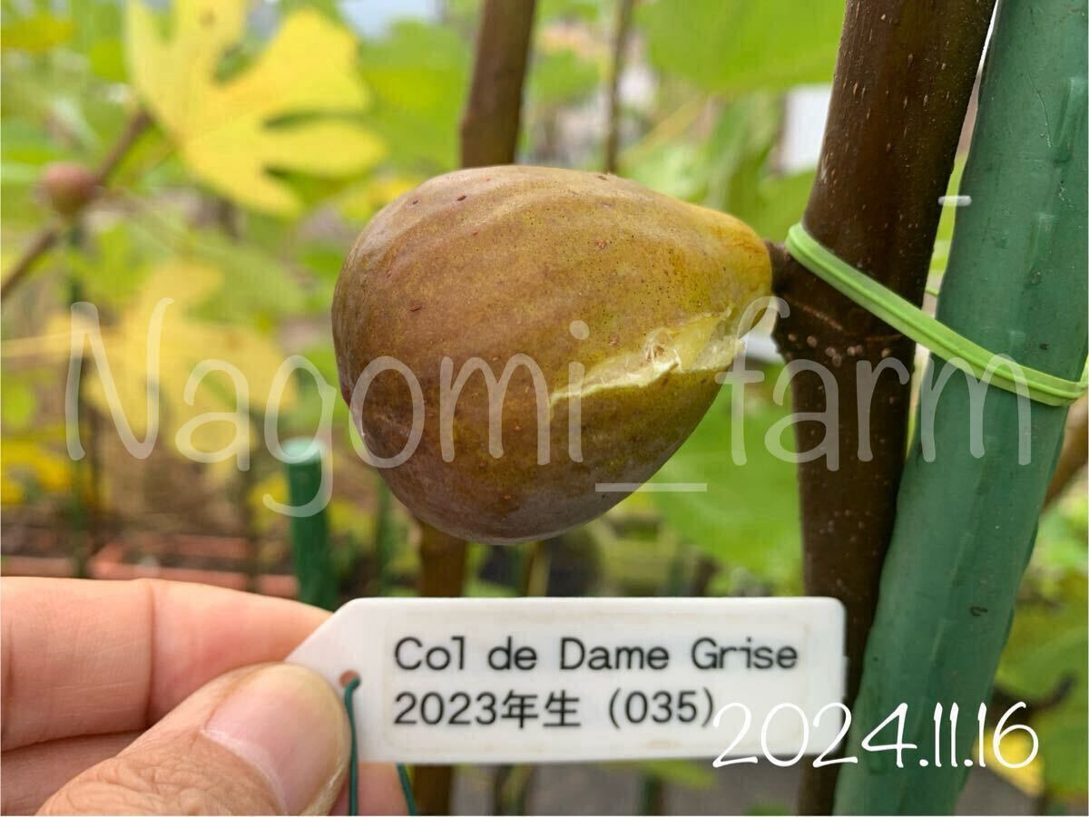 母木は、2023年3月に当オークションではお馴染みの岡山県で250種類以上のイチジクを栽培しているマニアの方から穂木を導入しました。昨年、2年生の母木から写真のような完熟果が収穫でき、果実の特徴から品種違いの可能性は低いと考えられます。