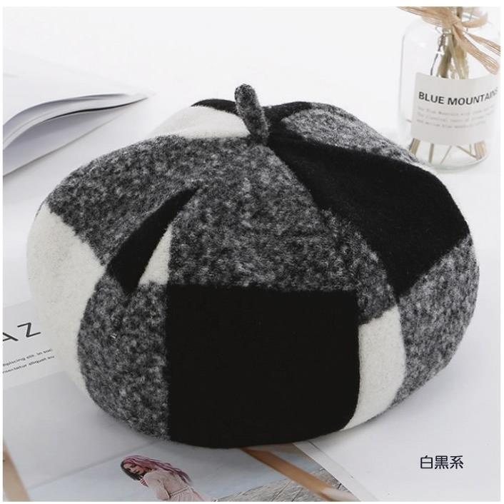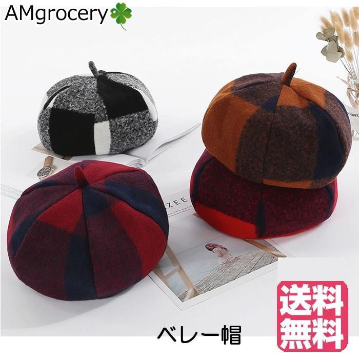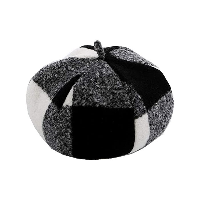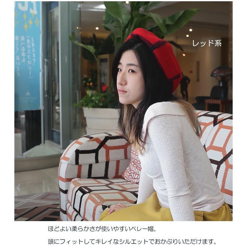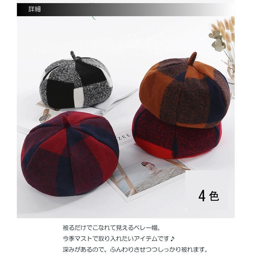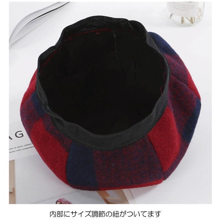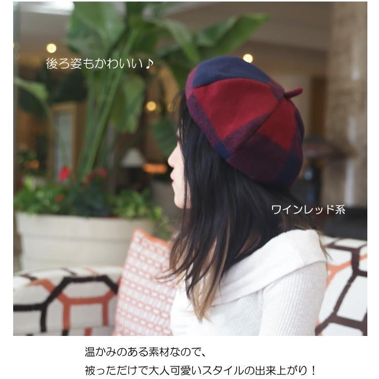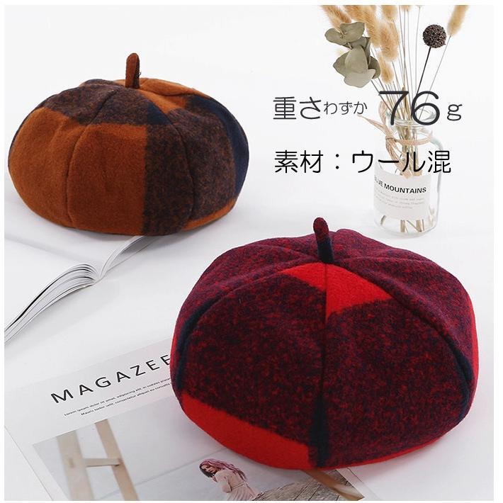 | ベレー帽 ウールブレンド レディース 帽子 レトロチェックベレー帽 大きめ プチプラ ベーシック |