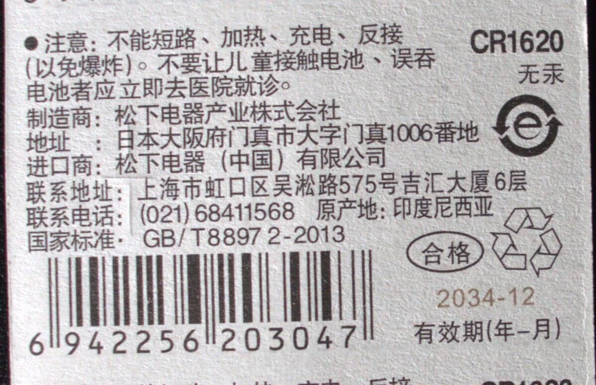 Panasonic パナソニック CR1620 3V