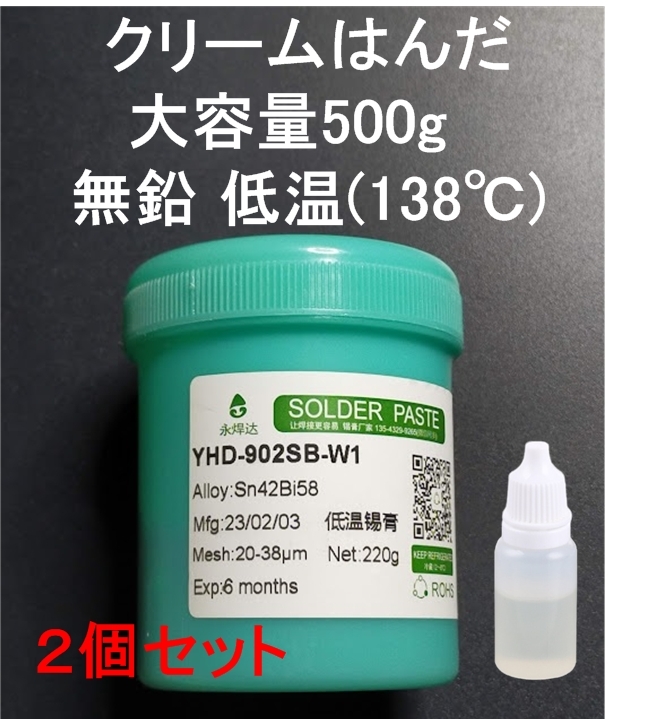 2個セット 大容量500g 低温 クリームはんだ 無鉛 薄め液付き (液体 半田 ハンダ ソルダー ペースト リフロー ギボシ)