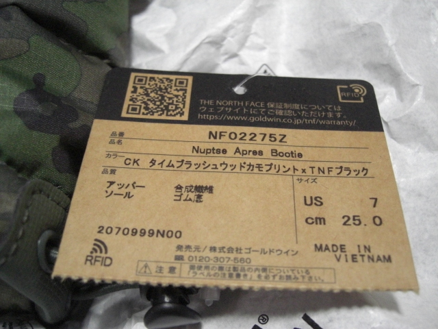 ほぼ未使用格安!ノースフェイス スノーシューズ? スノーブーツ? 25センチ 迷彩柄 タグ付き
