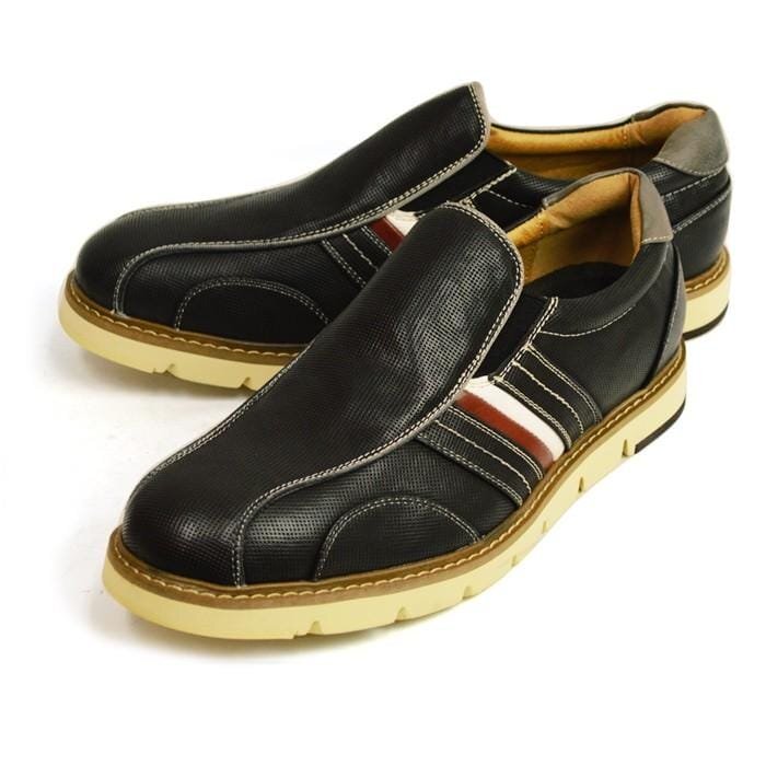 メンズ スリッポン 黒 パンチング サイドライン 軽量 シューズ スニーカー カジュアル ヴィンテージ【エコ配送】 vag702