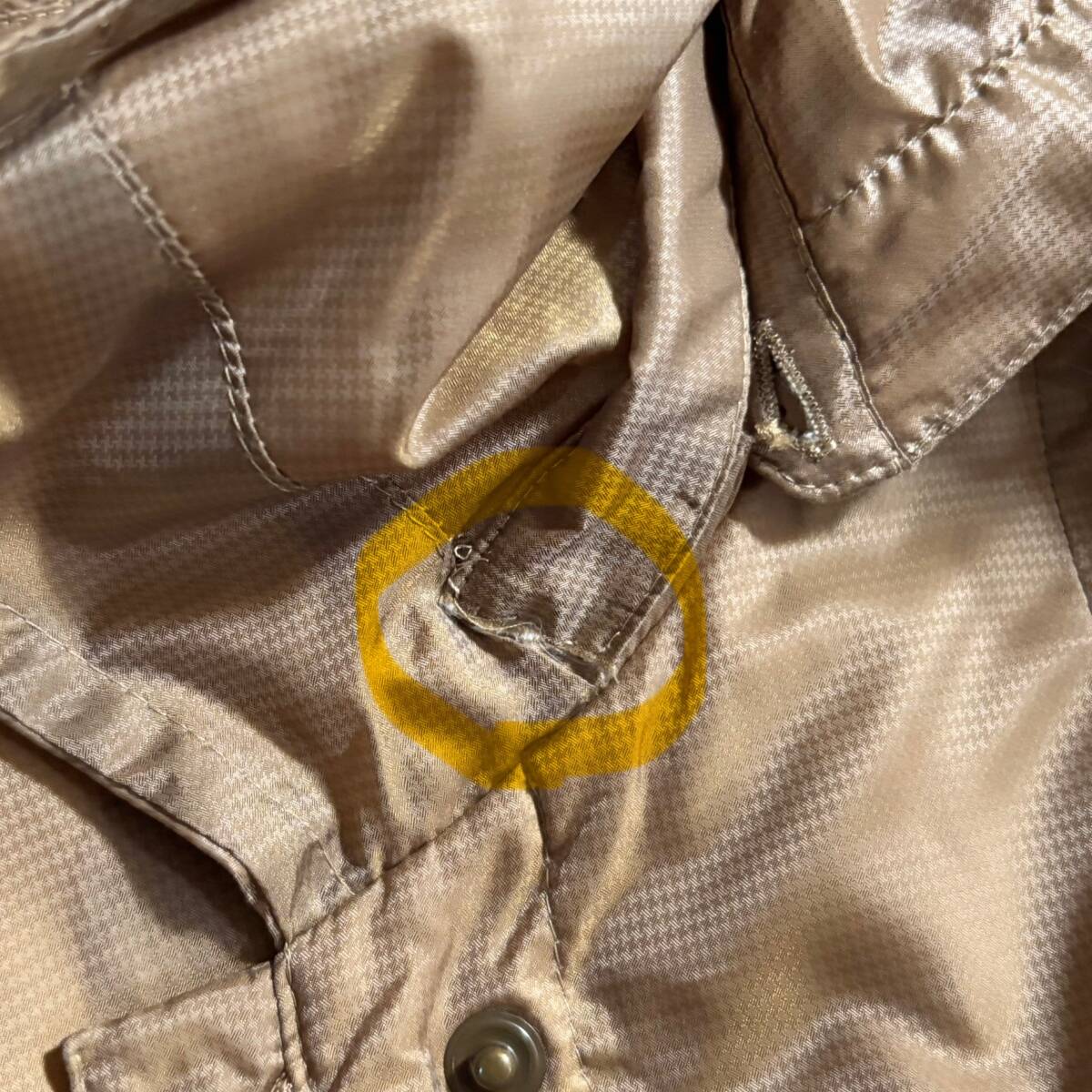 えりの裏側フードの取り付け部分に縫製糸のはずれ補修痕が少しあります(画像9枚目)。他には特に問題ありません。