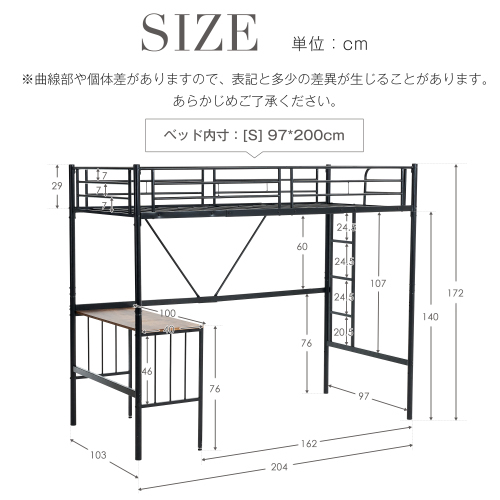 • 【おススメポイント】 1.【空間を最大限活用できる】デスク付きのパイプ製ロフトベッドは、省スペースながらも機能的なベッドです。ベッド下部にはデスクスペースがあり、勉強や作業に最適な環境を提供します。また、デスク下には棚があり、本や文房具などを収納することができます。
