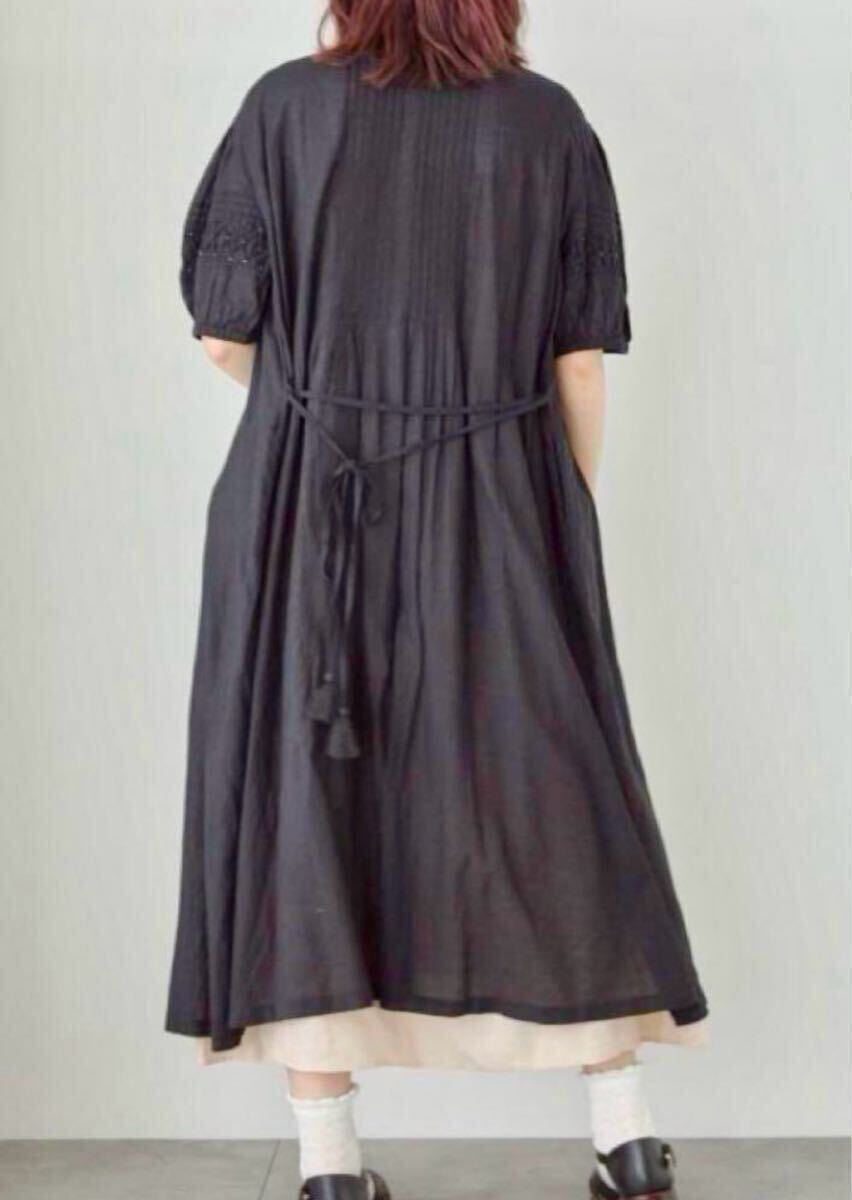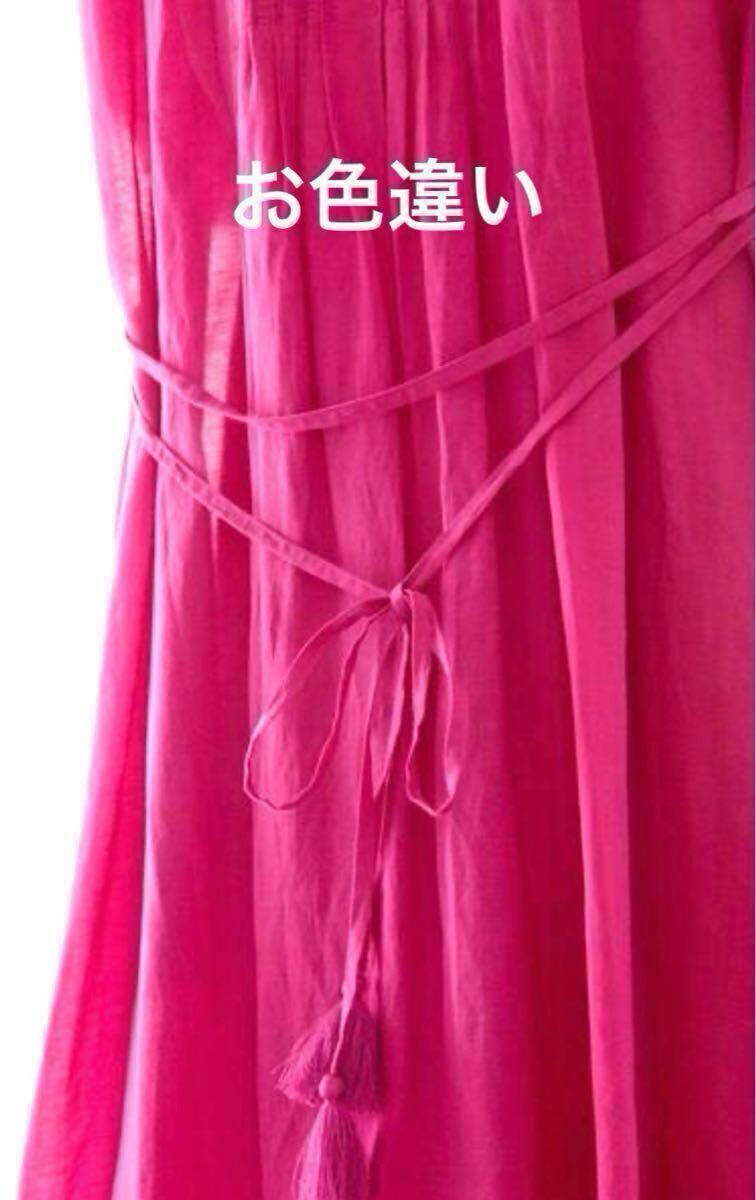 タッセル付きのウエスト紐は絞ったり、前を開けて羽織のように着たりと色々楽しめます。