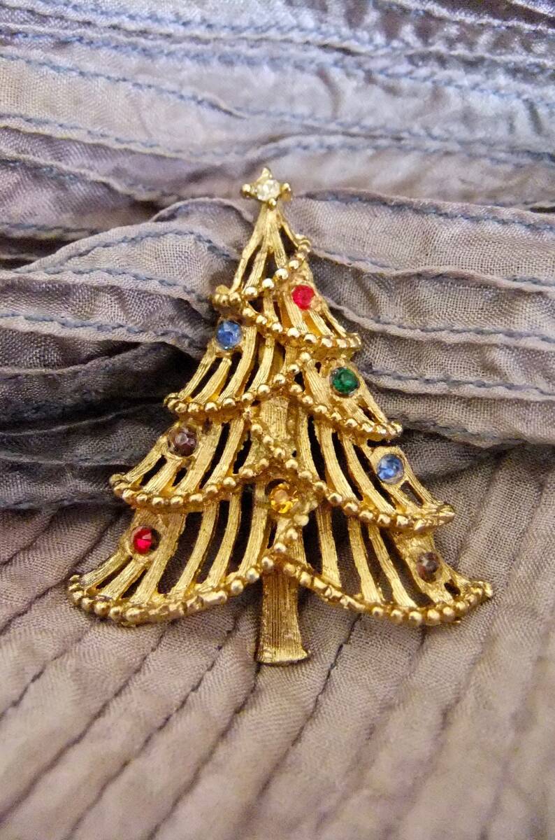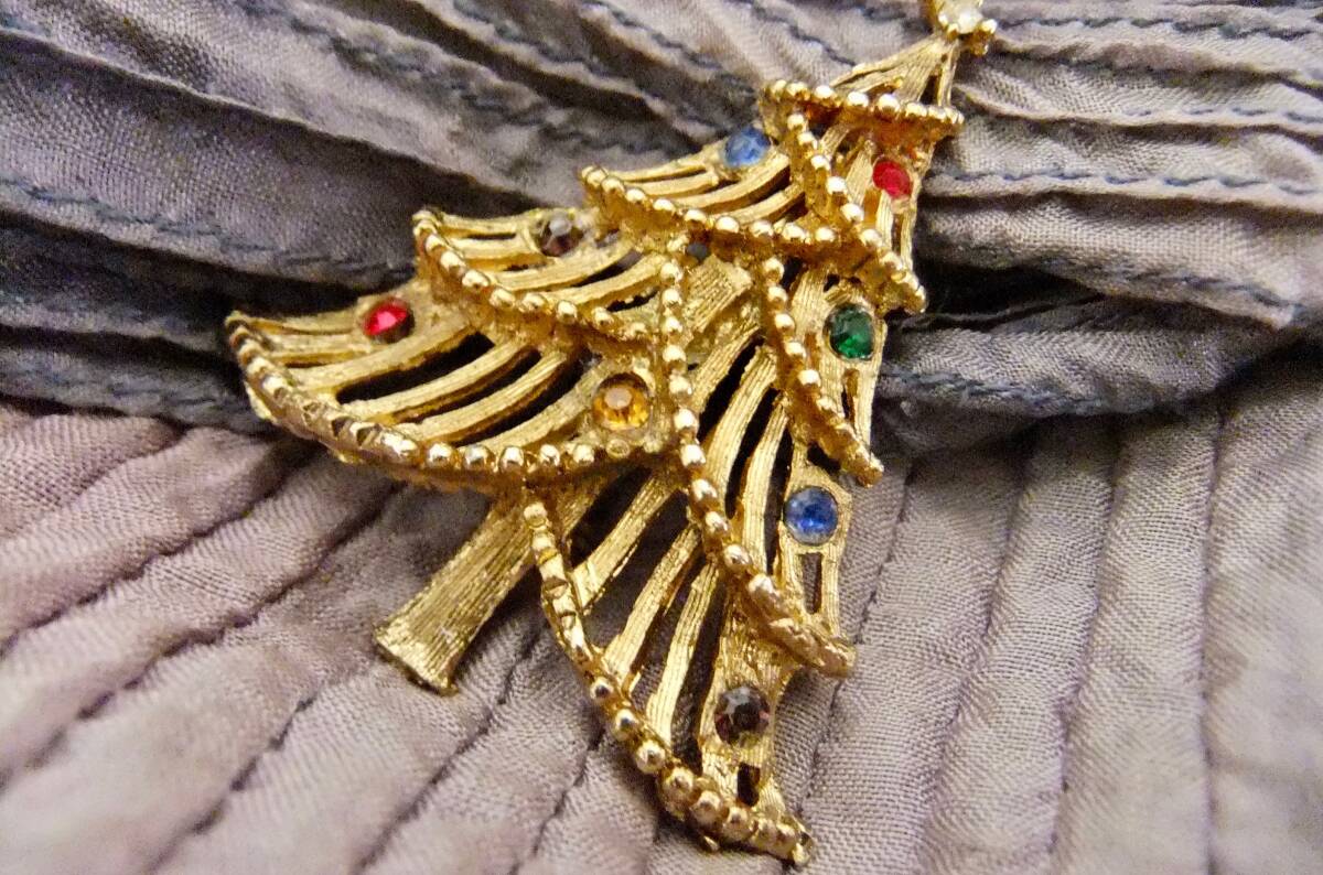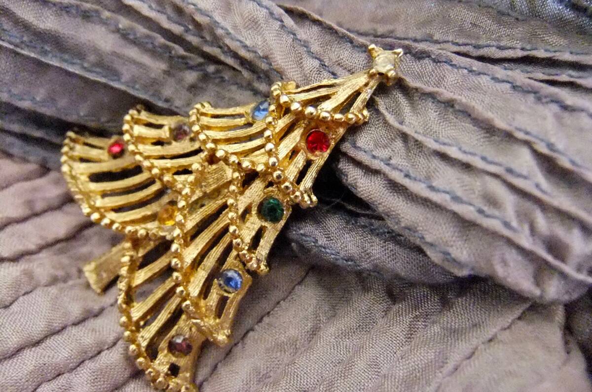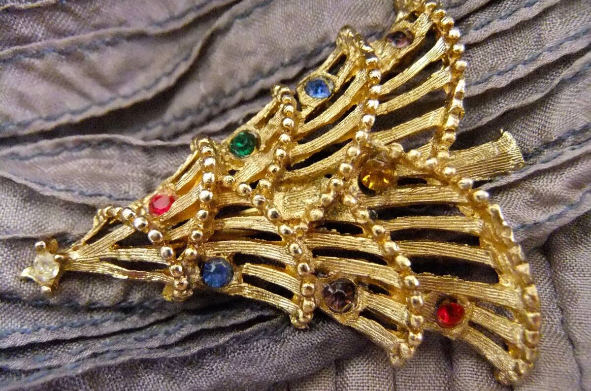 ヴィンテージ:マルチカラーストーン、クリスマスツリーブローチ 3-33
