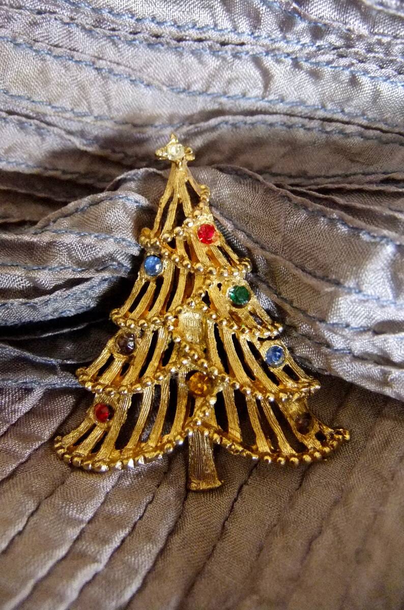 マルチカラーストーン、クリスマスツリーブローチ。