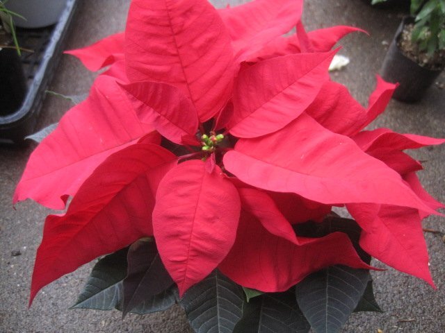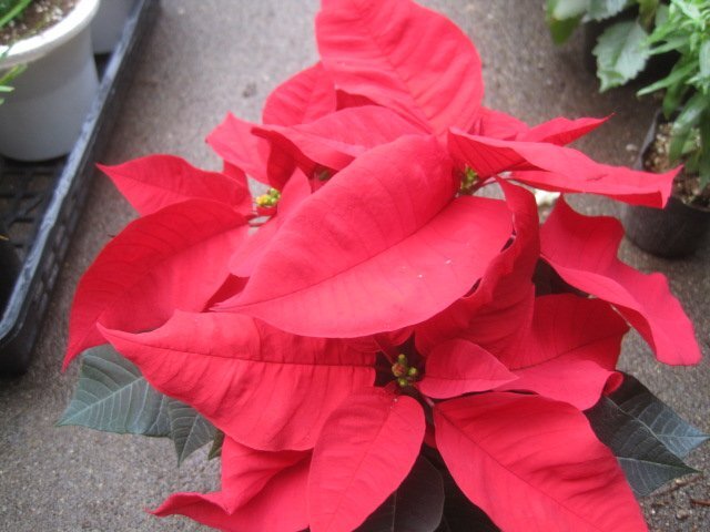 定番の赤色:クリスマスを象徴する、鮮やかで深みのある赤い苞(ほう)が特徴です。