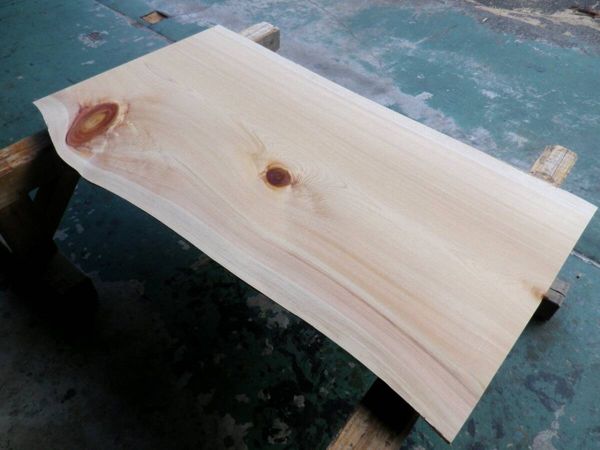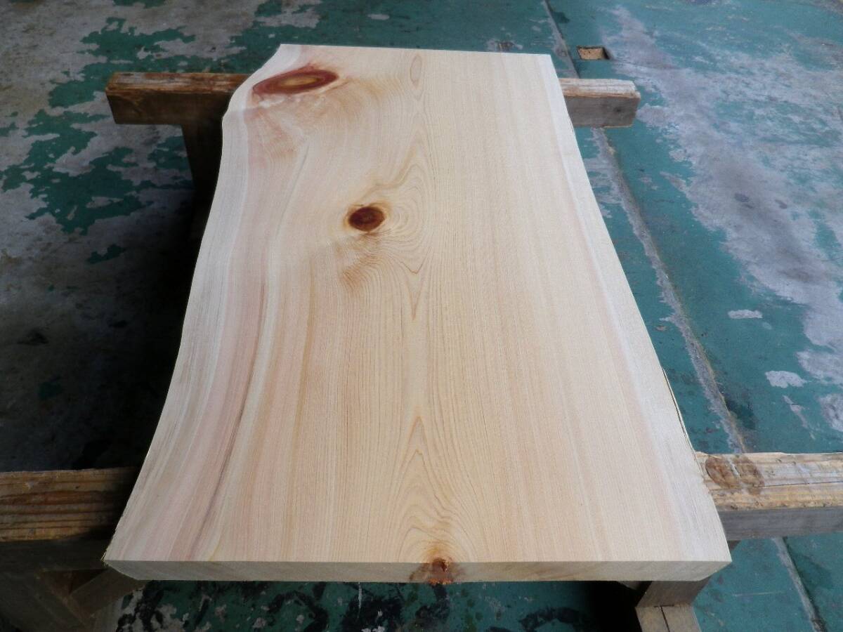 長124*幅58-67*厚5.4 桧46の木材木工材,一枚板自然木無垢材DIY テーブル天板 ヒノキ