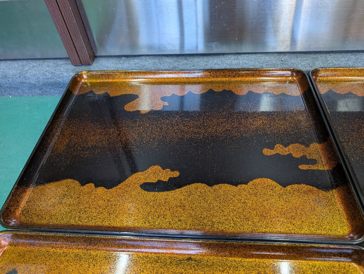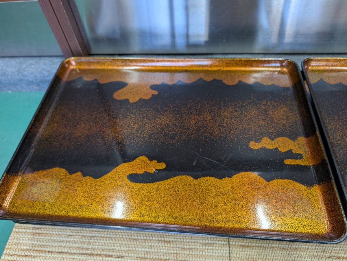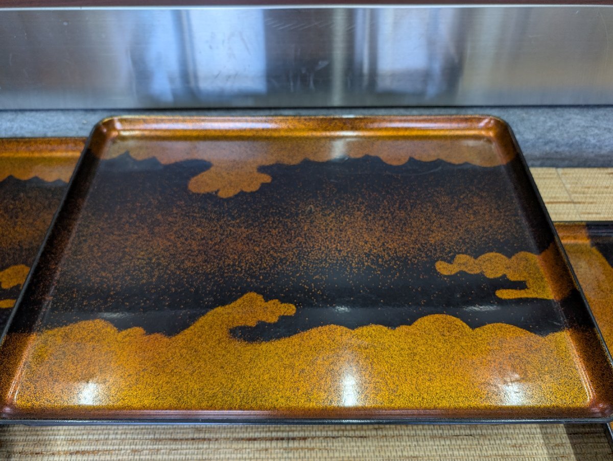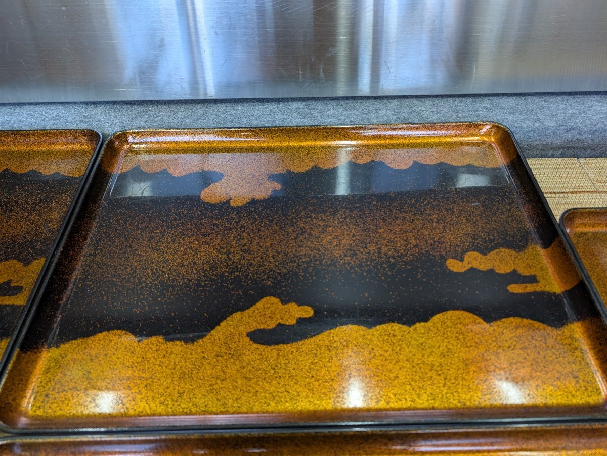 ①中古 折りたたみ式御前 金雲 陽光膳 漆器 仕出し 会席 祝事 法事 飲食店 御膳代台 5点セット 53.5×39×H22cm