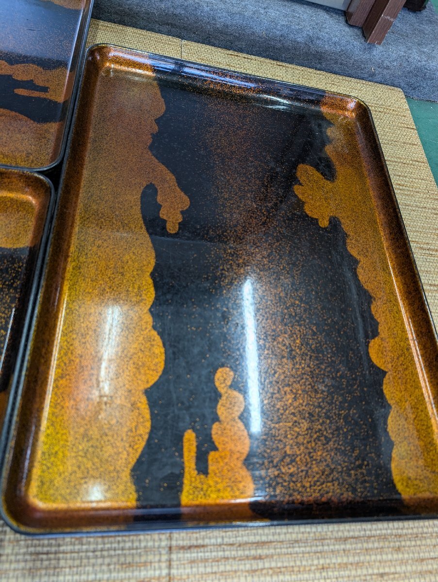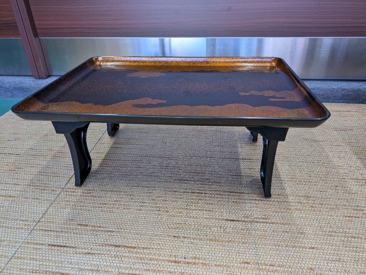 ①中古 折りたたみ式御前 金雲 陽光膳 漆器 仕出し 会席 祝事 法事 飲食店 御膳代台 5点セット 53.5×39×H22cm