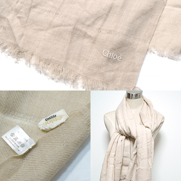 | ■Chloe■ロゴ刺繍ウール100%大判ストールマフラー/2531a | |
