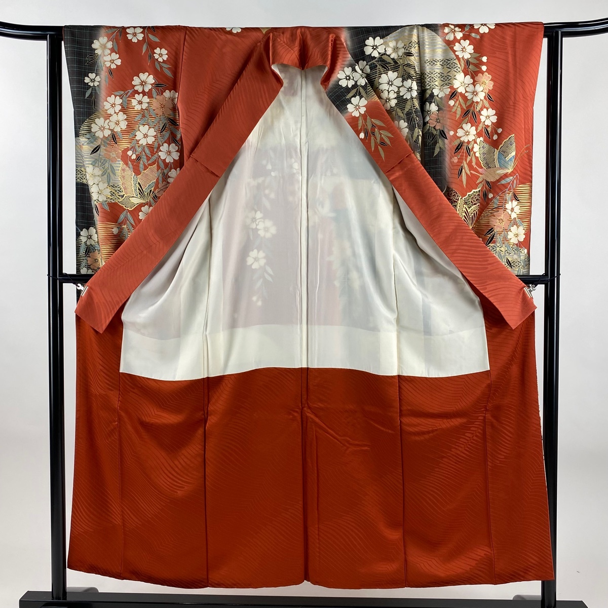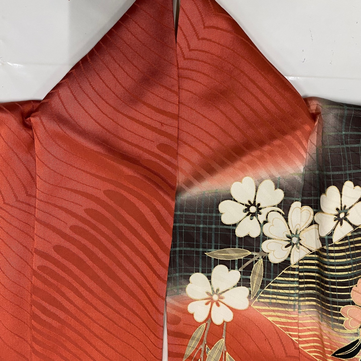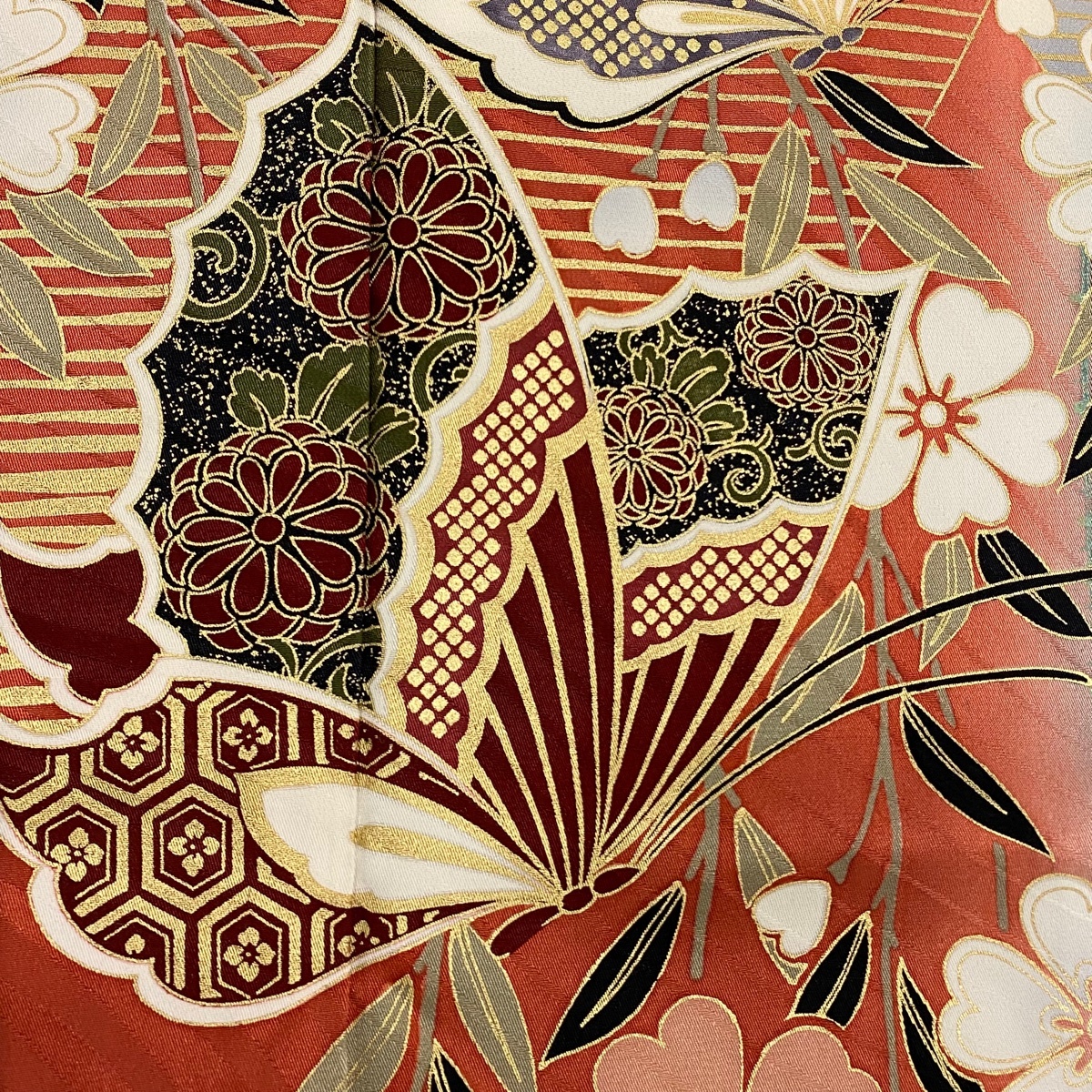 | 振袖 秀品 蝶 桜 金彩 ぼかし 朱色 袷 身丈153.5 裄丈62.5 S 正絹 【中古】 |