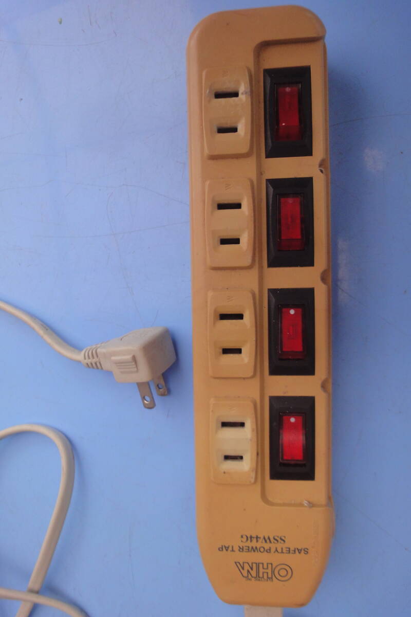 ◎  【OHM】 SAFETYPOWERTAP SSW44G 省エネ4連タップ個別パワースイッチ 4口   ON/OFF個別管理で節電効果があります。