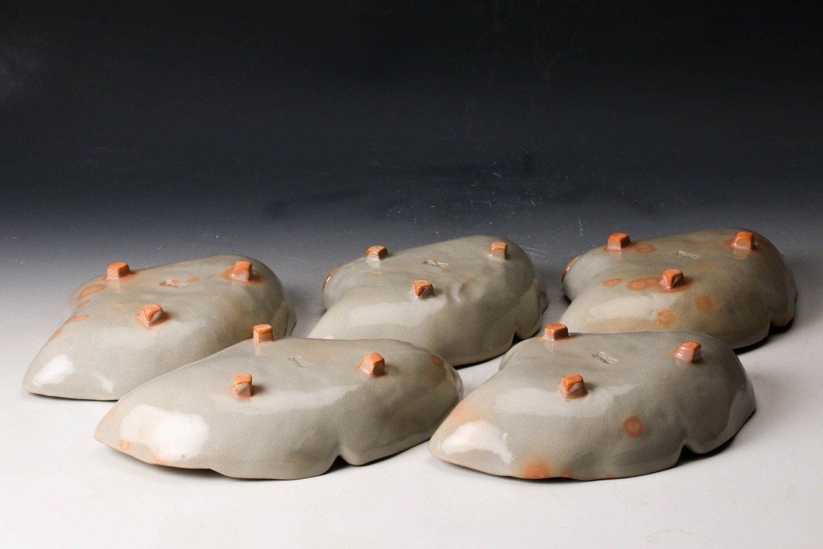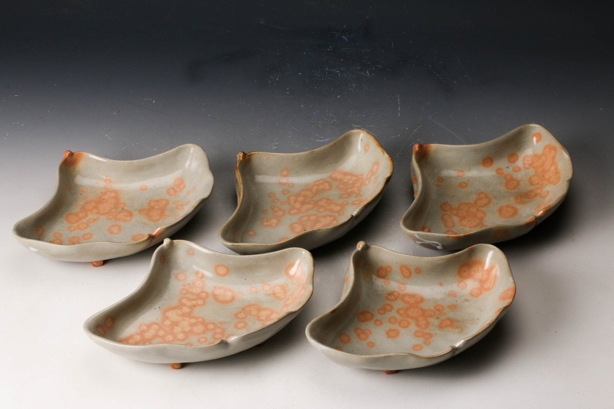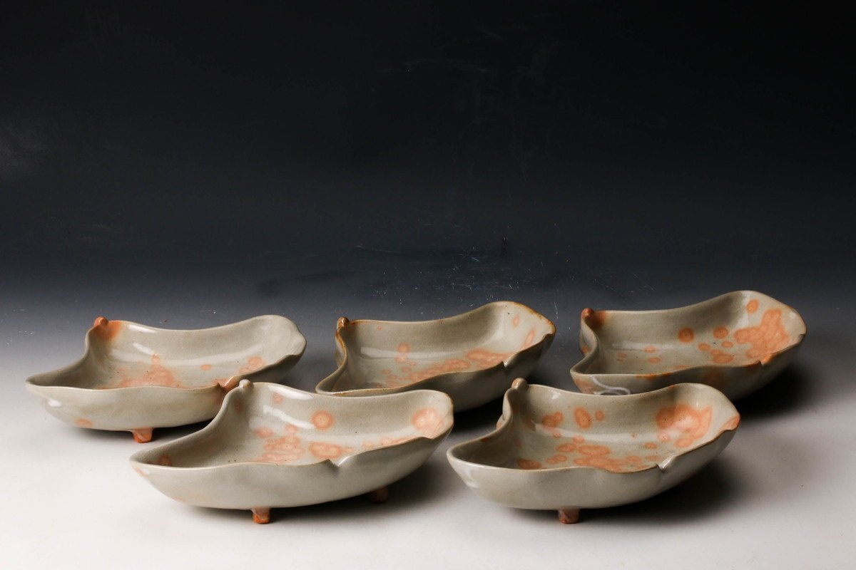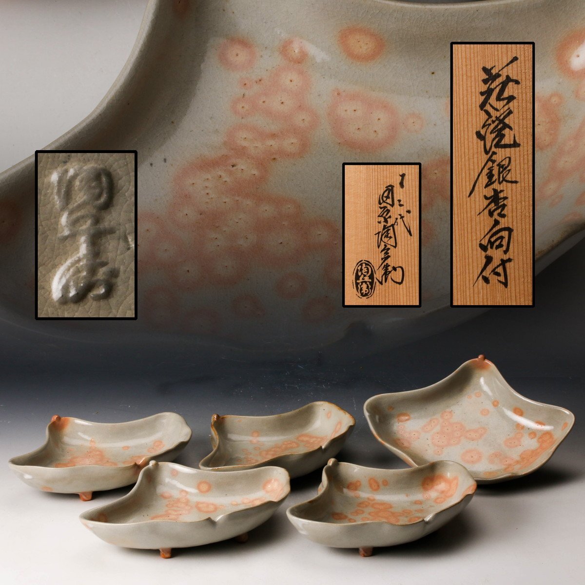 【佳香】十二代 田原陶兵衛 銀杏向付 五客 共箱 栞 本物保証