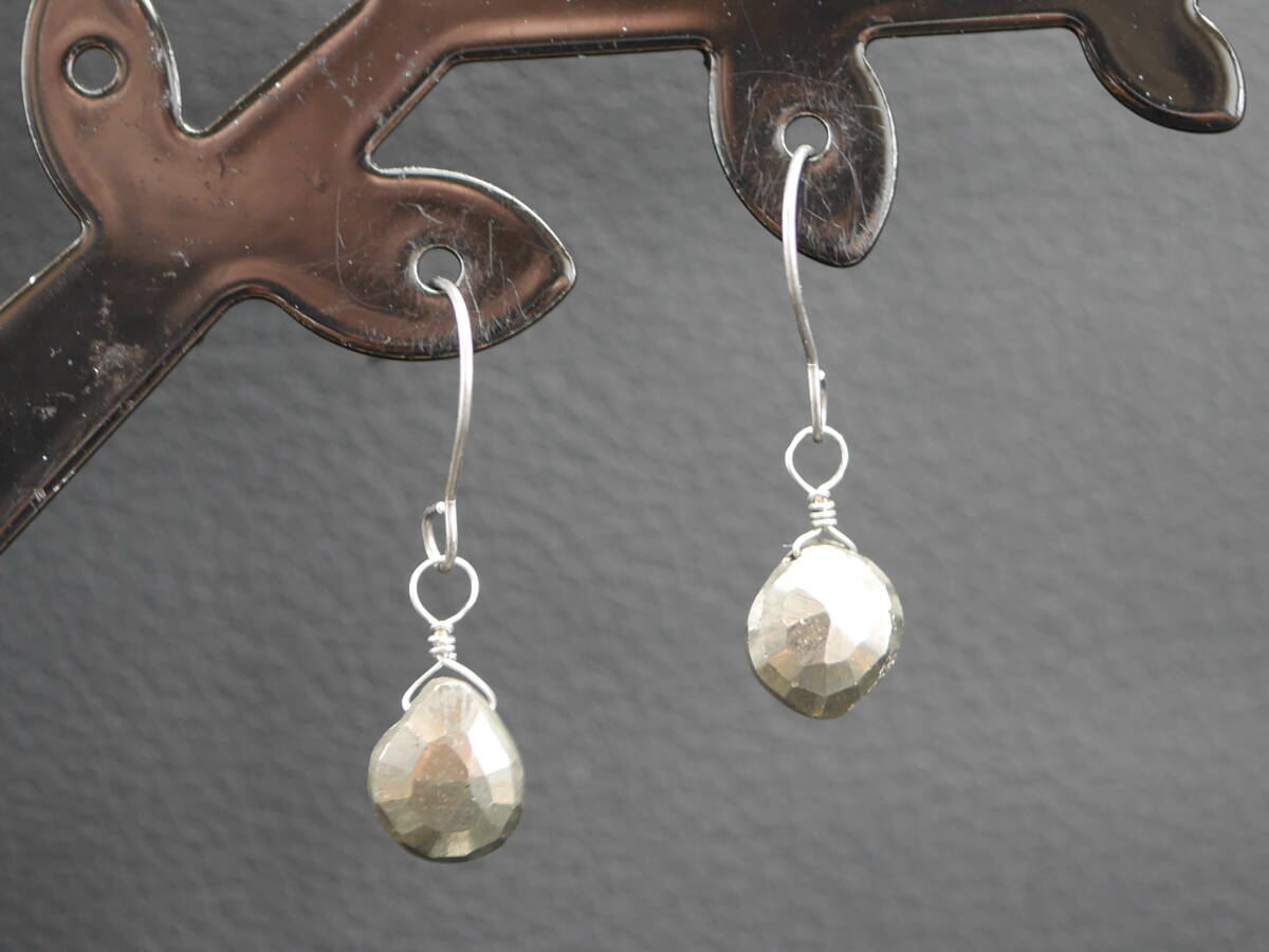 【チタンフック】ペアシェイプカットパイライトの1粒ピアス 394