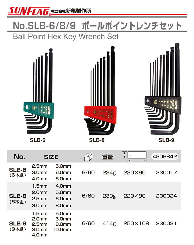数量限定 〈SUNFLAG〉9本組レンチセット 1.5~10mm No.SLB-9 JAN:4906842230031