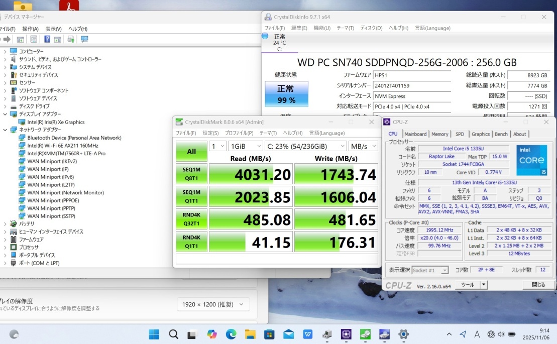 | CPU: 超高速 Intel 10コア 卓越性能 第13世代Core i5-1335u 1.3Ghz、 10コア12スレッド (ターボ・ブースト利用時の最大周波数 4.6GHz) |