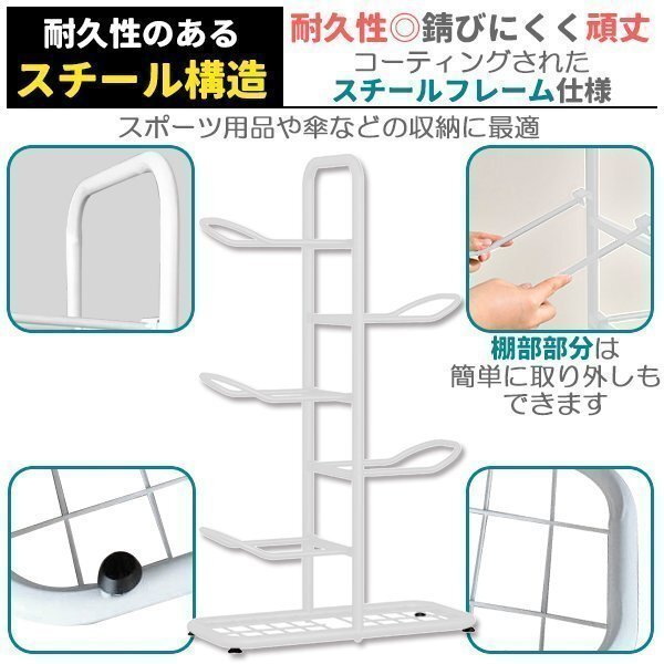 ボールスタンド ボールラック ボール収納 ボール収納ラック ラック ホワイト 白 ボール整理 傘立て ボール サッカー バスケ ヘルメット