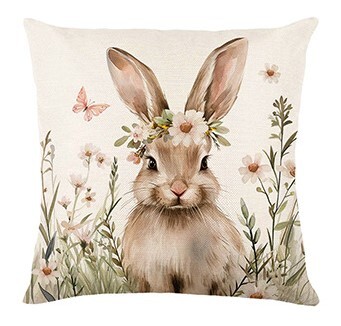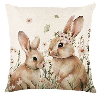 ナチュラルなリネン風の生地に、水彩画のような優しいタッチで描かれた動物たちが、お部屋に癒やしと安らぎをもたらします。イースターの飾り付けにもぴったりです