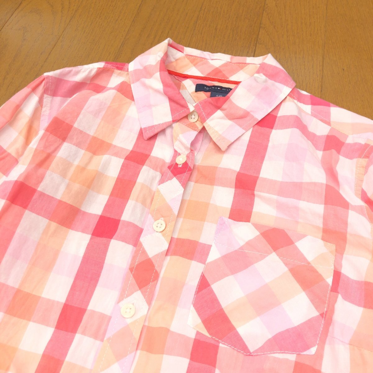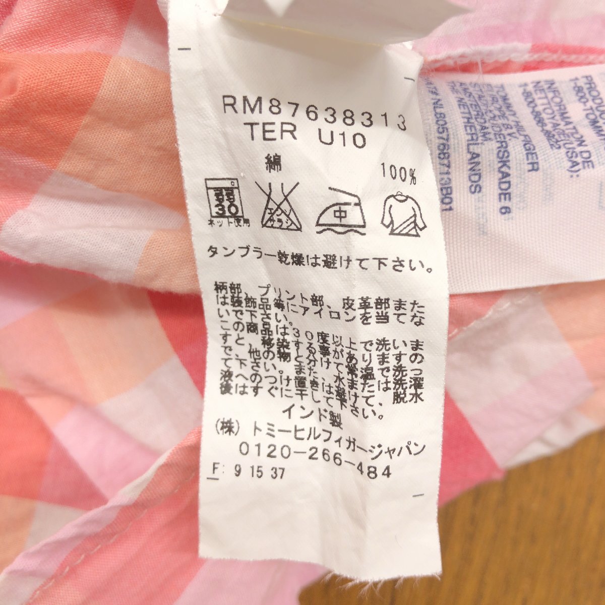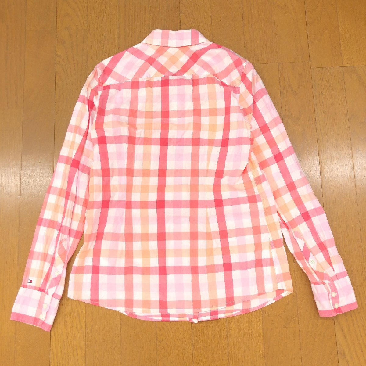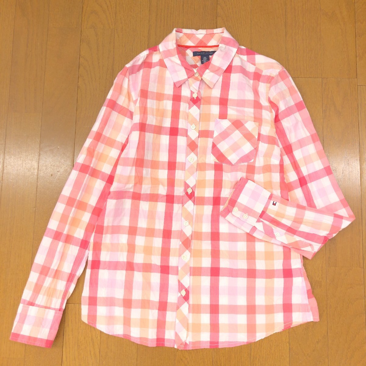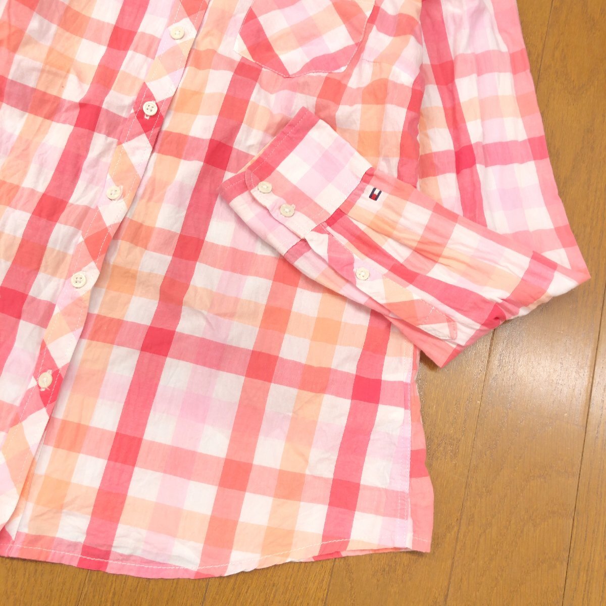TOMMY HILFIGER トミーヒルフィガー ロゴ袖 チェック シャツ M ピンク系 ブラウス 長袖 国内正規品 レディース 女性用 婦人