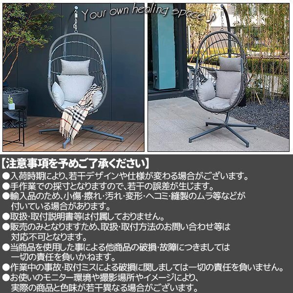 ハンギングチェア ガーデンファニチャーハンモックチェア 1人掛け クッション付 ピーコック ハンギングチェア グレー