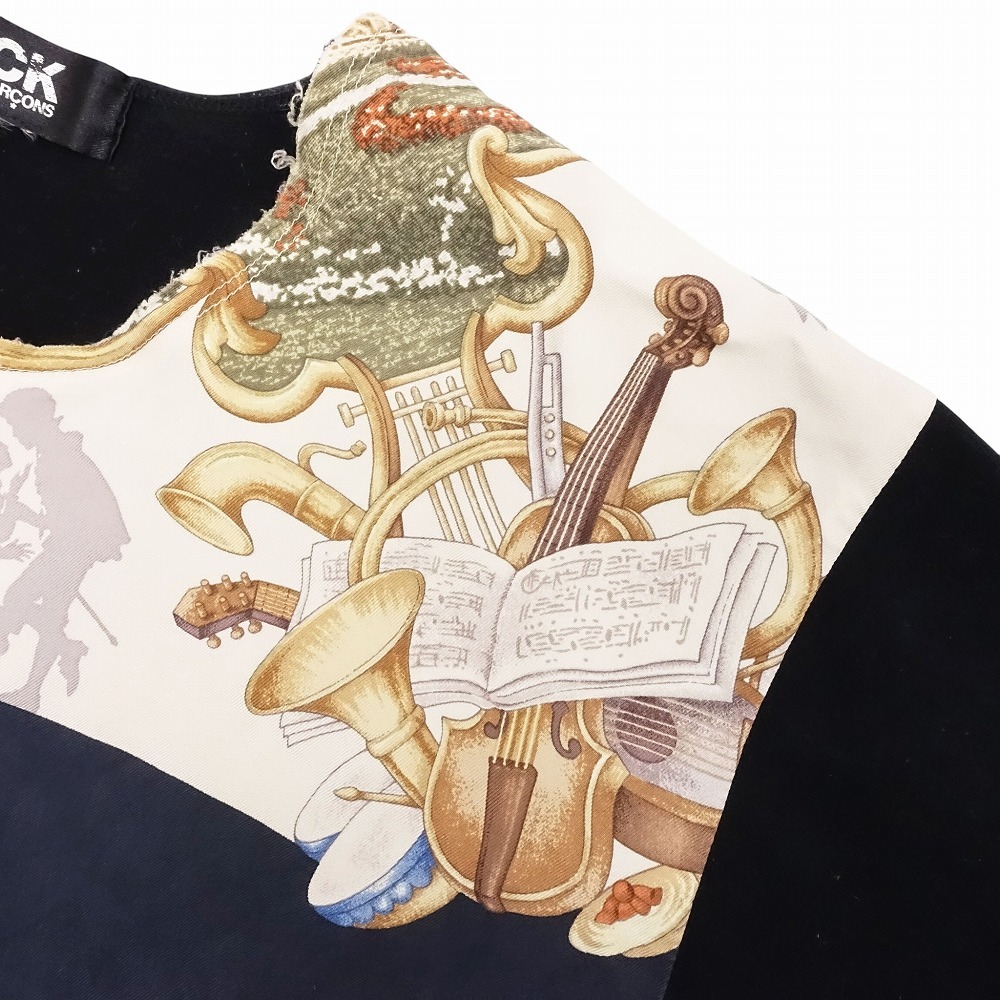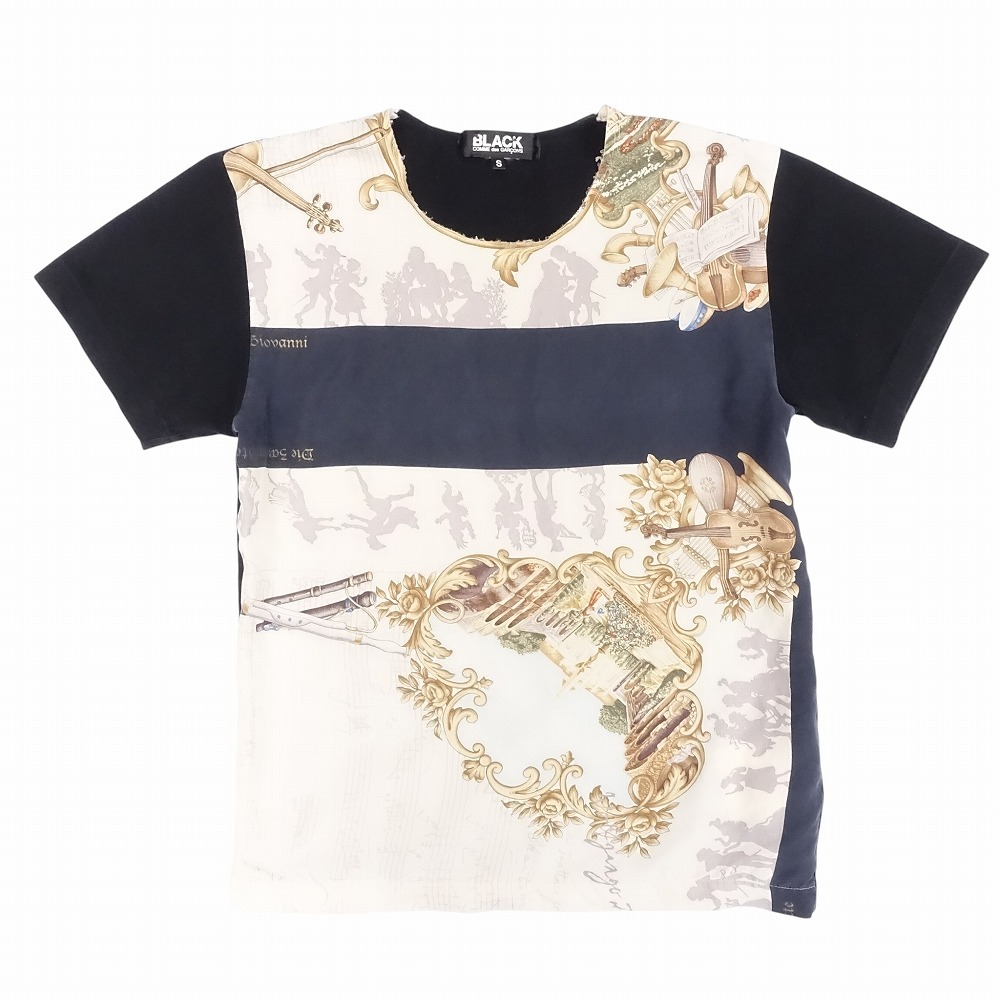 | 【BLACK COMME des GARCONS コムデギャルソン シルク スカーフ柄 切替 Tシャツ カットソー 半袖 カットオフ サイズS 黒 メンズ】 | |