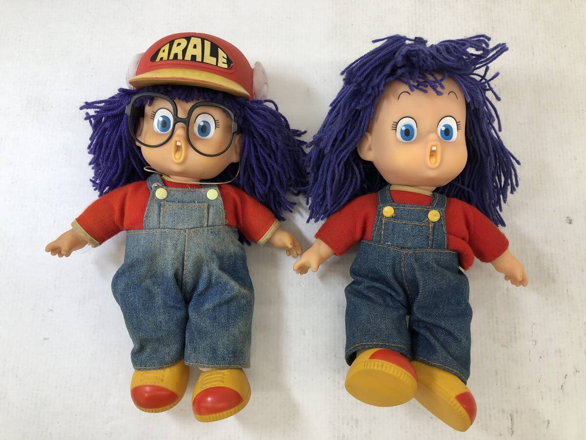 | T251103-03E/ ポピー Dr.スランプ アラレちゃん ソフビ 人形 パワーギャル オーバーオール 時代物 昭和レトロ 希少 レア 2体セット POPPY | ||
