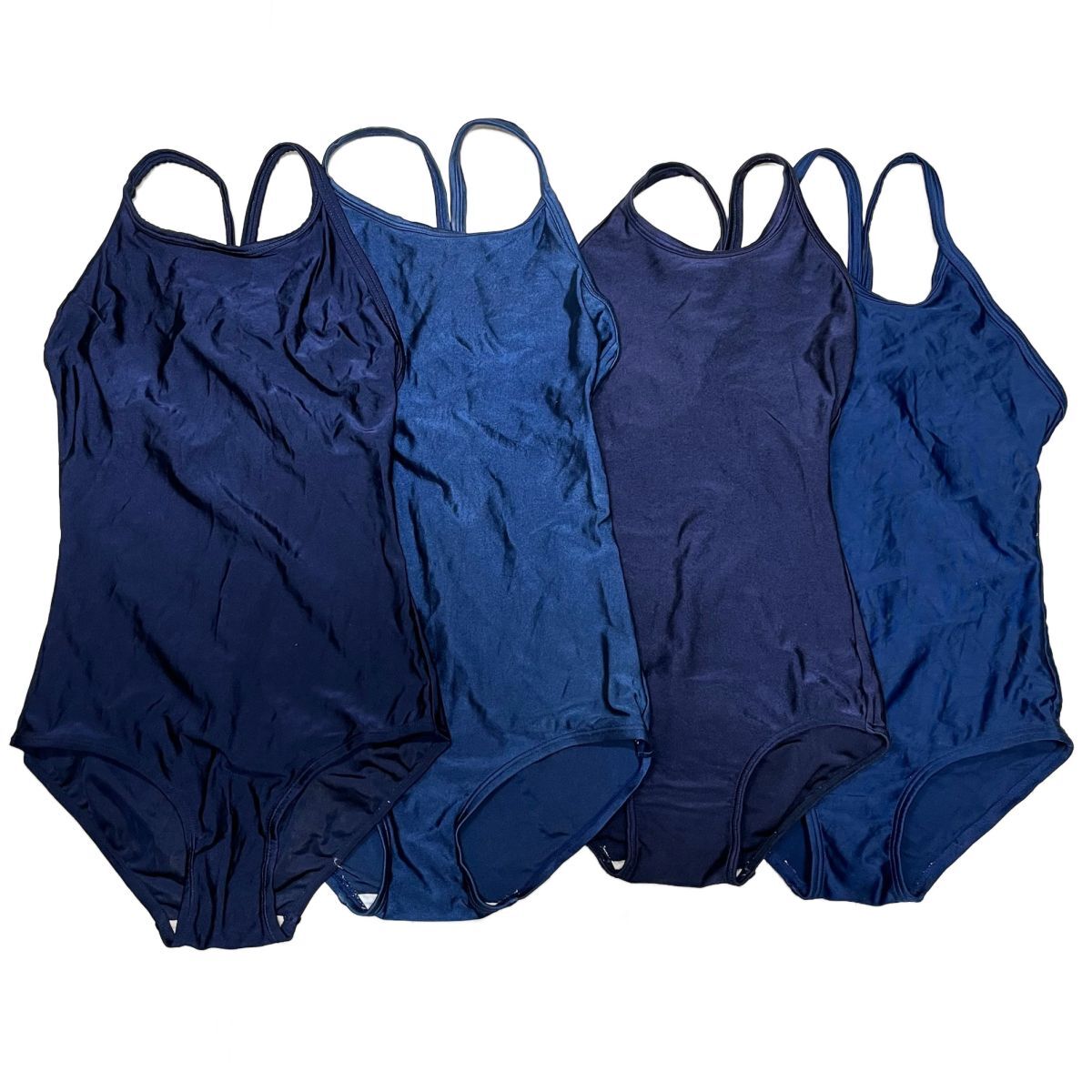 40【整理品リサイクル】ネイビーパイピング4枚セット女子競泳水着(150~L)★光沢濃紺ネイビー★ゴールドウィン日本被服工業