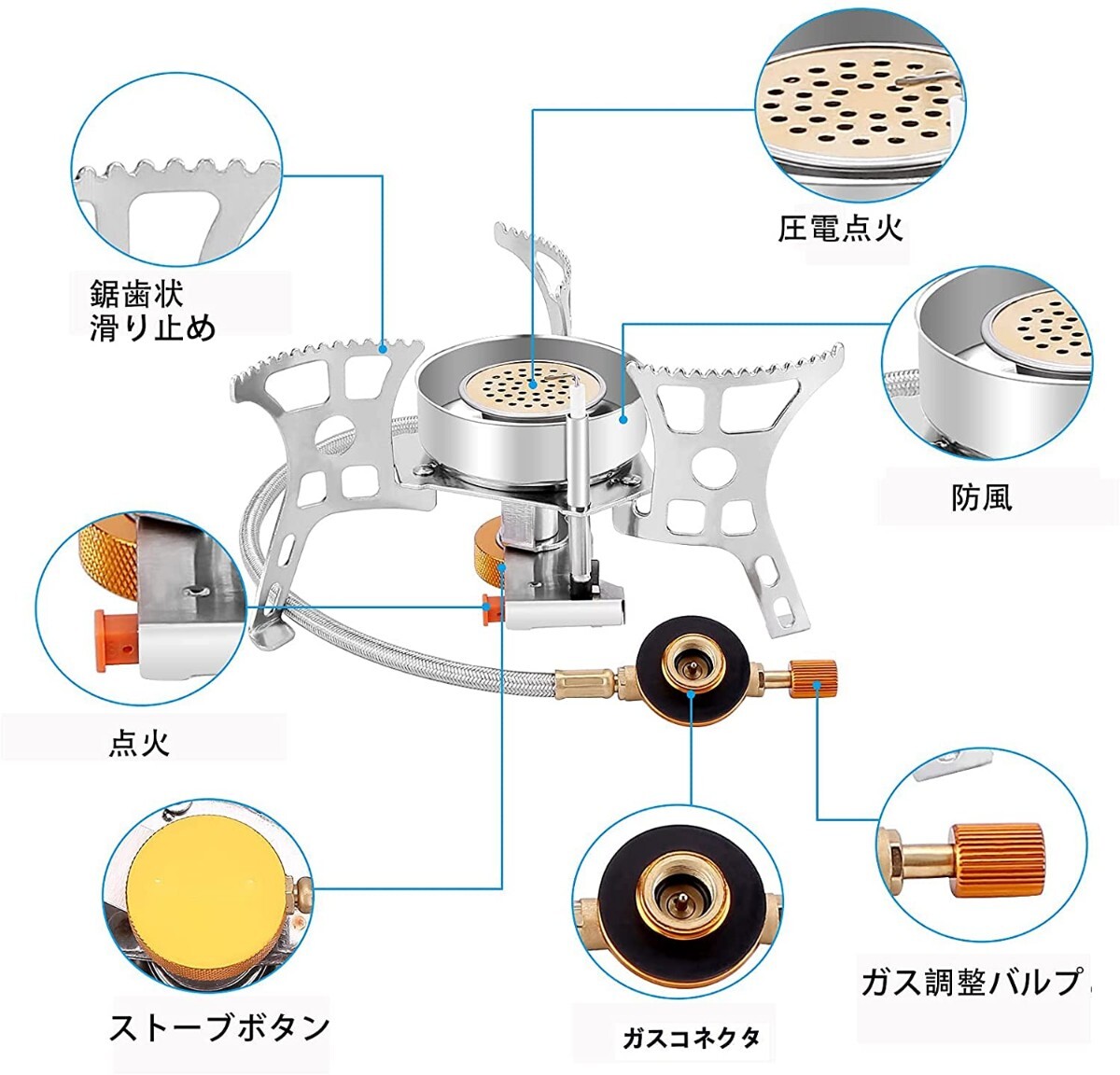 【高い熱効率】4000Wまでの強力な火力、圧電点火設計、そして用途に応じて熱を調整することができ、3〜4分で1000mlの水を沸かすことができ,アウトドアでもすぐに美食を楽しめます。