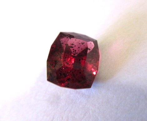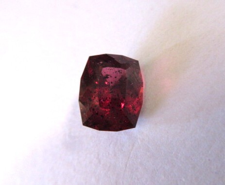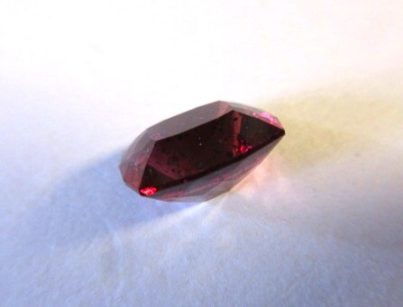 赤いテリのあるロードライトガーネットです。点々としたインクルージョンがありますが、透明感とテリがあります。非加熱。
