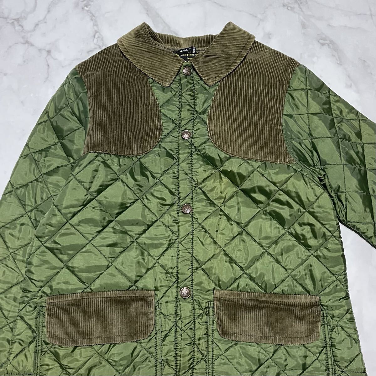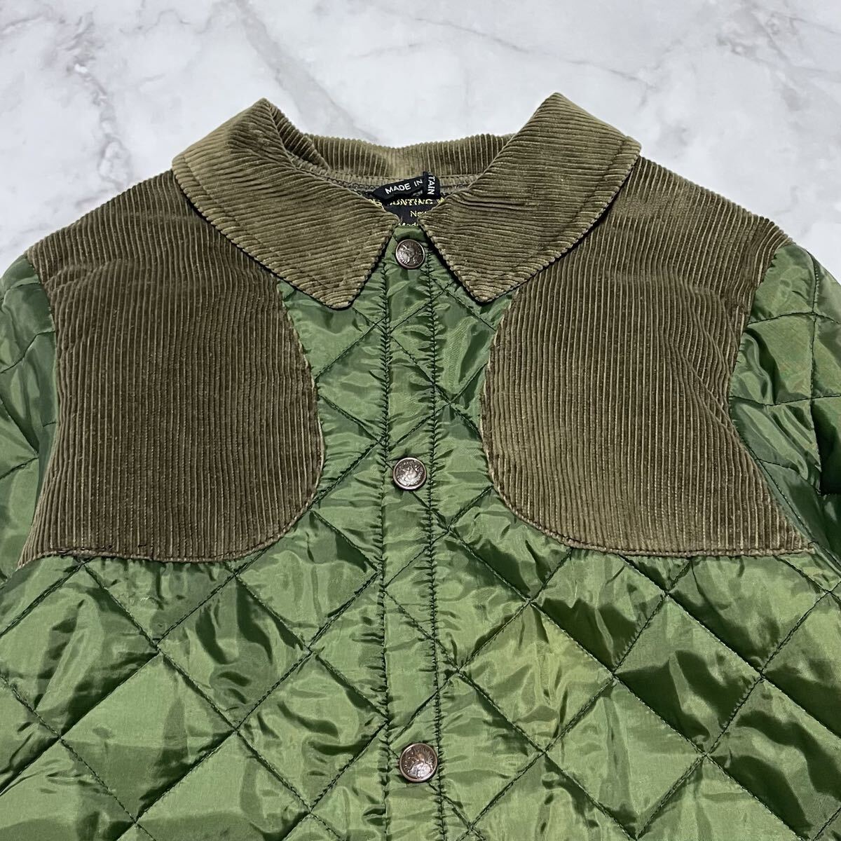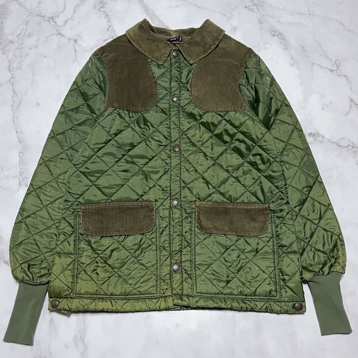 上品なオリーブグリーンを基調に、襟やポケットフラップ、エルボーパッチにはブラウンのコーデュロイ素材を切り替えた、英国調の落ち着いたデザインが魅力です。