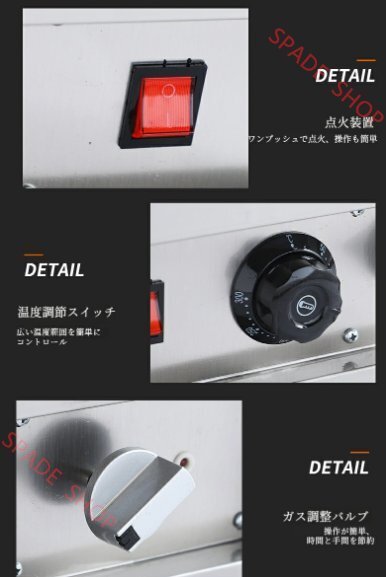 業務用ディープフライヤー:このカウンタートップガスフライヤーは、錆びにくく効率的なリング加熱を実現するリング状の金属製コンロを備えています。たっぷりとした容量で、4~8人分の揚げ物を作るのに最適で、家庭料理にも業務用キッチンにも最適です。
