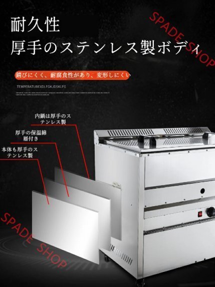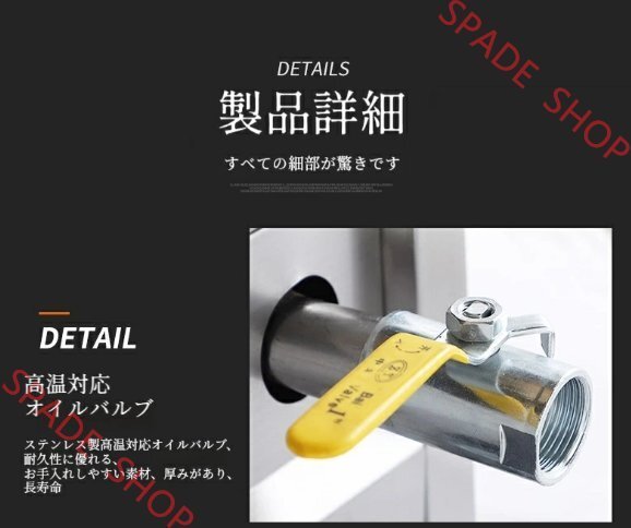 ? たっぷり容量:業務用と家庭用の両方に設計された当社のガスフライヤーは、ご友人やご家族にお気に入りの揚げ物料理をご馳走するのに最適です。油に埋め込まれた加熱エレメントが油の温度を素早く回復させ、プロ仕様でヘルシーな揚げ物を実現します。