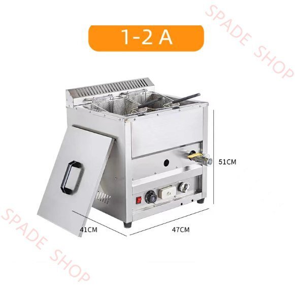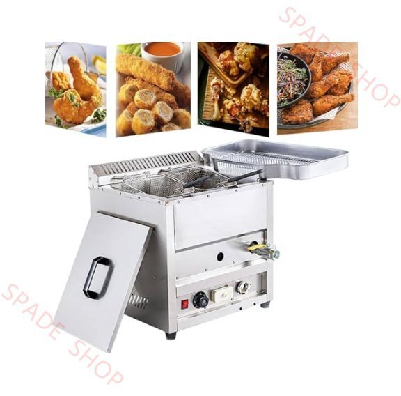 ステンレススチール製ガスフライヤー、フライドポテト用大容量ディープフライヤー、バスケットと蓋付き、レストランや家庭のキッチンに最適