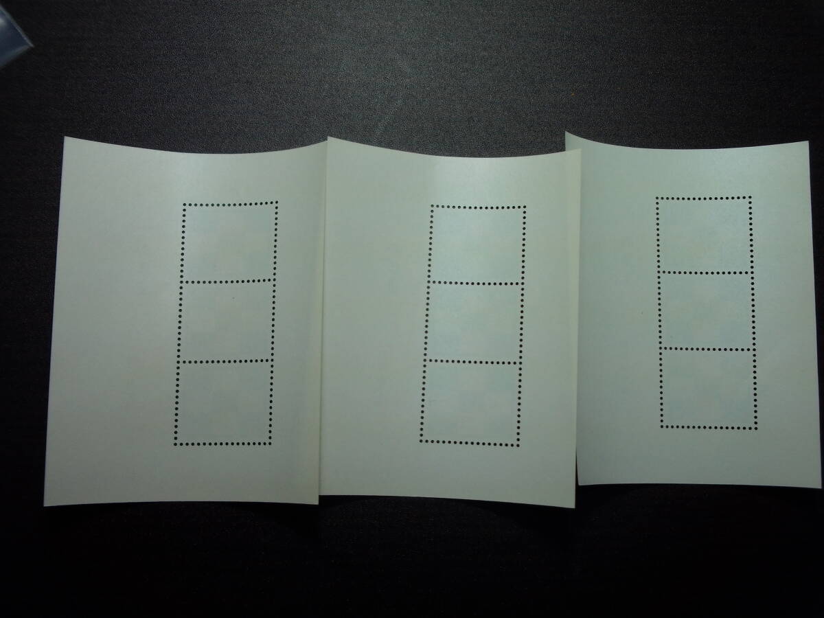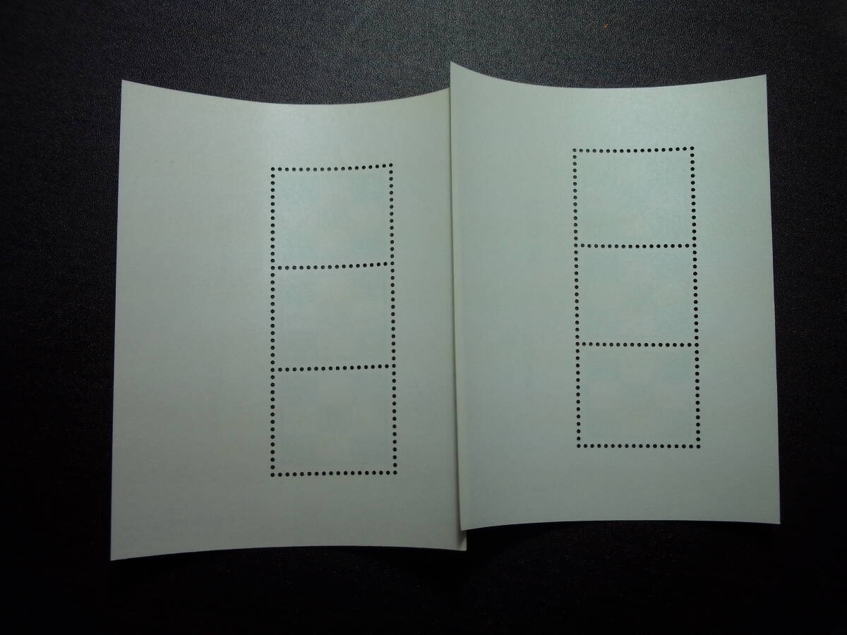 この頃の切手は丸まりやすいので目打ち離れ、折れをおこしやすいです。また、この頃の切手はグラビア印刷の特徴としてヒビ