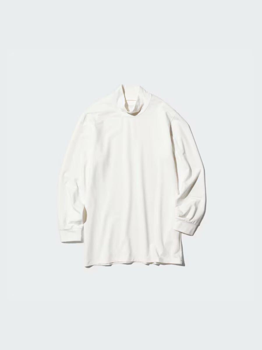 -モックネックで首元は暖かく、カーディガンやジャケットにも合わせやすいのでレイヤリングに最適。