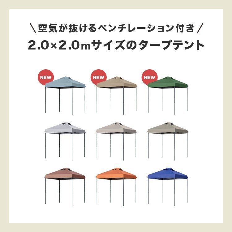 コンパクトなサイズ200×200cmのワンタッチタープテントです。 組み立てはワンタッチで簡単! 大人2人で持ち上げてゆっくり広げるだけ! フレームは強度で耐久性のあるスチール製を採用! アルミ製より少し重いですが、強度で安定性があります!! トップカバー上部には風抜けのベンチレーションを装備! テントの内側にたまる空気が通り抜け、風による倒壊事故対策になります。 風の強い日も安心! 急な雨が降っても安心の撥水加工が施されており、大人数のバーベキューやスポーツ観戦、アウトドア、休憩所にぴったり。 シーンに合わせて3段階で高さ調節が可能です。 持ち運びに便利な専用収納バック付き! 【商品仕様】 ベンチレーション仕様 カラー:サンドベージュ 商品サイズ(約): ・使用時:幅200×奥行200×高さ250cm ・収納時:幅120×奥行21×高さ21cm 材質:スチール、ポリエステル 重量(約):12kg 【商品内容】 タープテント本体 ロープ ×4 ペグ ×8 専用収納ケース 【注意事項】 ・テント生地には撥水加工が施されていますが、雨天・豪雨下での完全防水を保証するものではございません。 ・風速5m以上の風の吹く場所でのご使用は、転倒や破損の原因になります。 ・設営の際は、2人以上で丁寧に作業を行い、しっかりと固定してください。乱暴に扱いますと、故障や破損の原因になります。 ・海外製品で、簡易梱包での輸入のため風防に擦れや多少の小キズなどがある場合がございますが、商品自体には問題ありませんのでご了承下さい。 ・商品は、モニターによって色合いが異なって見える場合があります。 ・仕様・デザインは改良のため予告なく変更することがあります。 |