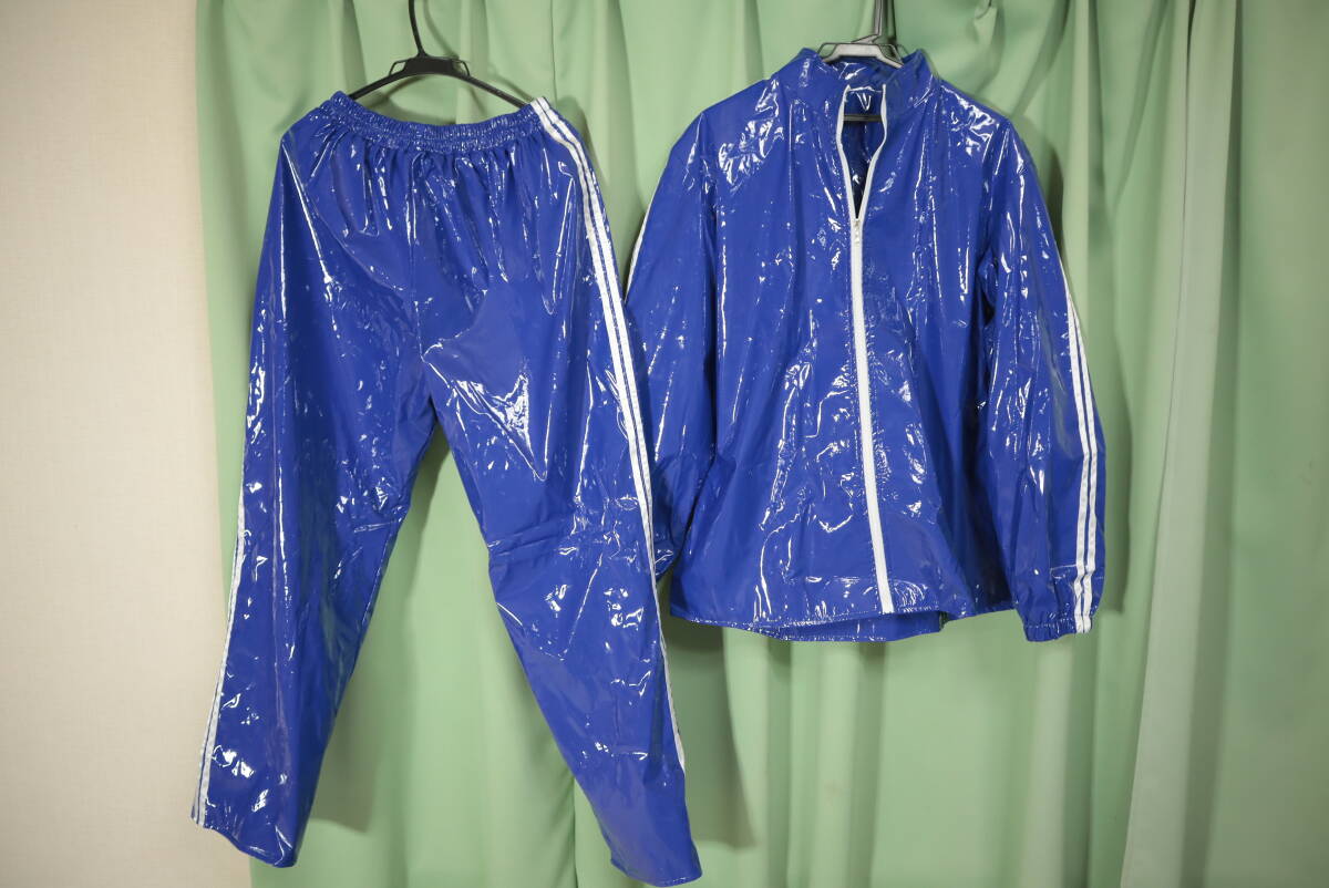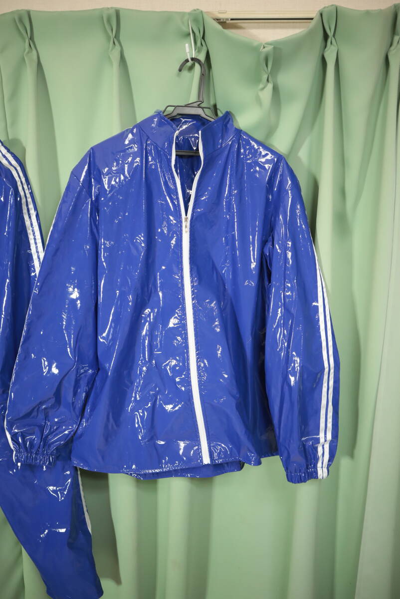 | ☆光沢エナメルレインコート ジャージ上下 ブルー XL位☆ |