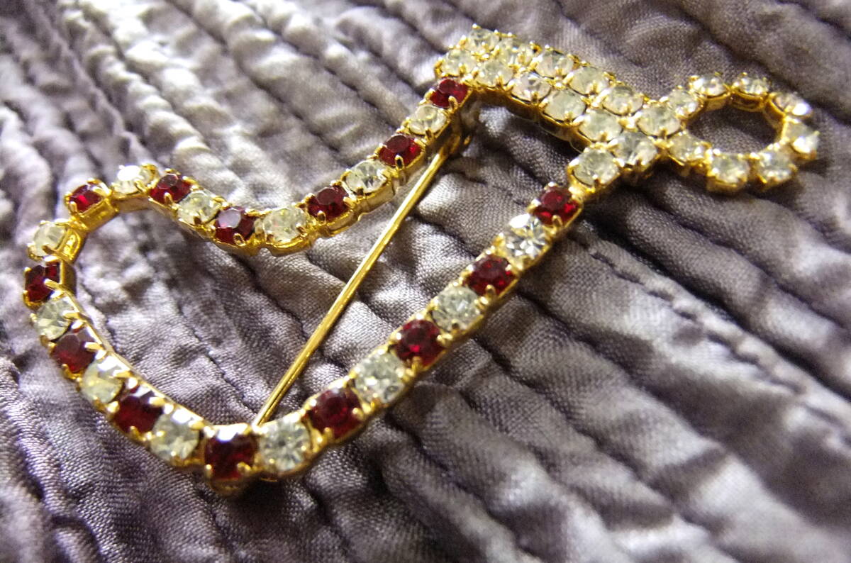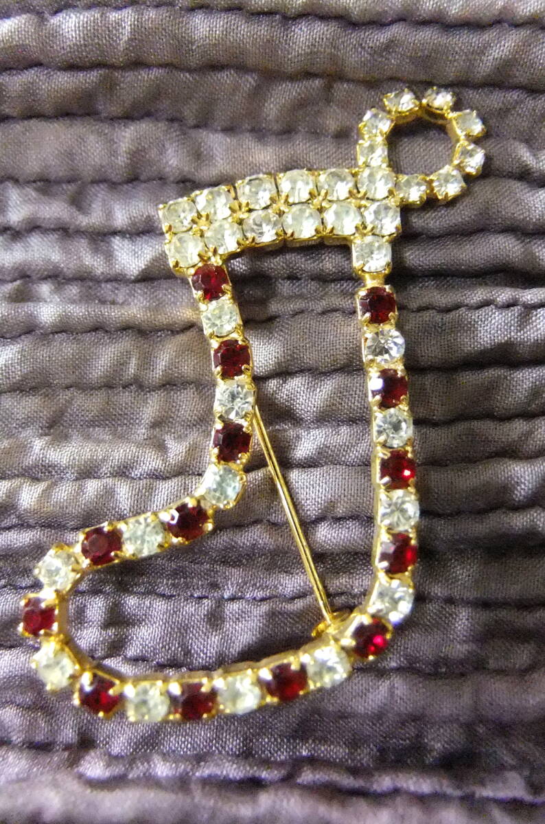 ヴィンテージ:2色ストーン、クリスマスの靴下ブローチ 3-66