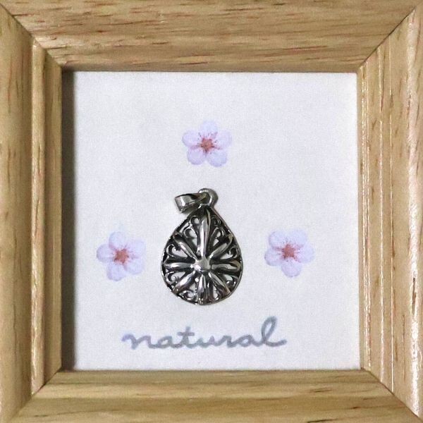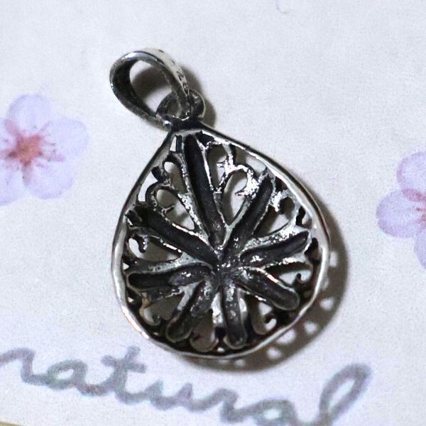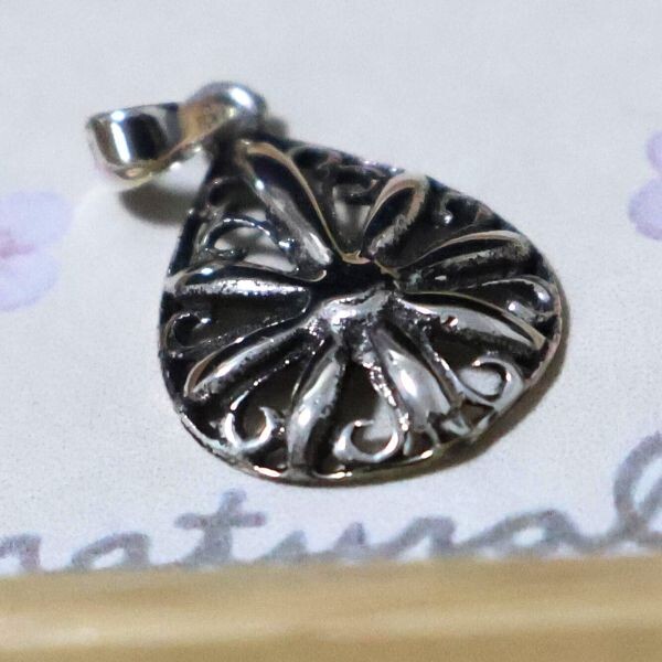 優雅な雫型フォルムに、花とクロスを組み合わせたようなデザインが美しく映える、シルバー925製ペンダントトップです。立体的に浮かび上がる花模様は、中心から放射状に広がるエネルギーを象徴し、身に着ける人に前向きな力と調和をもたらしてくれるといわれています。 このモチーフには「再生」や「希望」、そして「幸運を引き寄せる光の象徴」といった意味合いが込められており、日々のお守りとしても最適です。繊細な透かし模様が光を受けて輝くたびに、胸元に華やかな存在感をプラスしてくれます。 お好みのチェーンに通してネックレスとして使用すれば、フォーマルからカジュアルまで幅広いコーディネートに活躍します。男女問わずお使いいただけるユニセックスデザインも魅力のひとつです。 上質なシルバー925を使用したペンダント。シルバーの白いキラメキと洗練されたデザインで、日常使いから特別な日まで幅広くお楽しみいただけます。 プロフィールの確認お願いします。 ノーブランド商品なのでブランド品の様に高額ではなく、シルバーの価値に見合った価格で販売させて頂いています^^ ★商品詳細★ ・商品:ペンダントトップ(TOP) ・商品番号:SH0914na ・材質:シルバー925 ・重量:約1g ・サイズ:約21.8mm×12.8mm ※バチカンを含んだ全体の長さ ・バチカン内径 約3.2mm×2.6mm 商品はTOPのみの販売となりますので、写真のチェーンをご希望あれば、同梱条件で特別価格にて販売させて頂きます。 ★購入時の保障について★ お送りした商品が商品詳細記載と違いがあれば、全額返品返金にてさせて頂きます。 万一郵送時にトラブルがあった場合にも、責任をもって対応させて頂きます。 ご安心して購入ください。