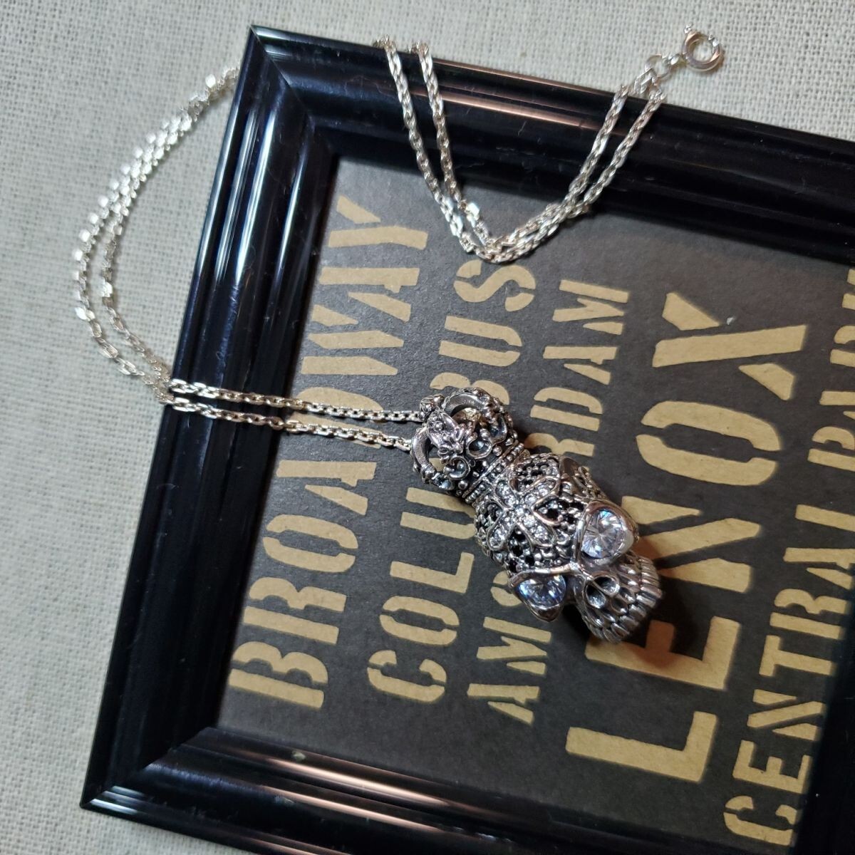送料無料 シルバーネックレス 銀 本物 メンズ スカル ペンダント シルバーネックレス チェーン付き 銀 人気 インカの秘宝 n0221