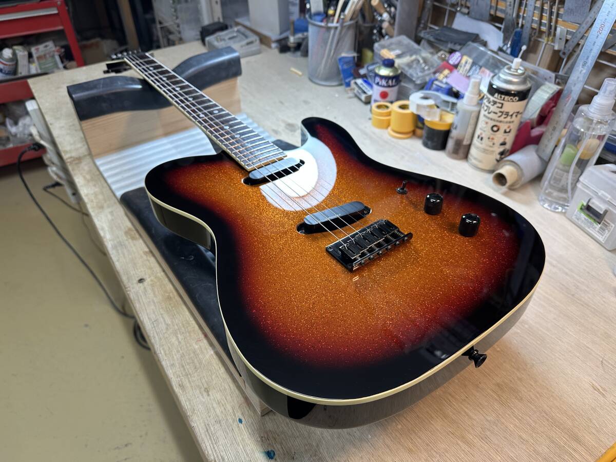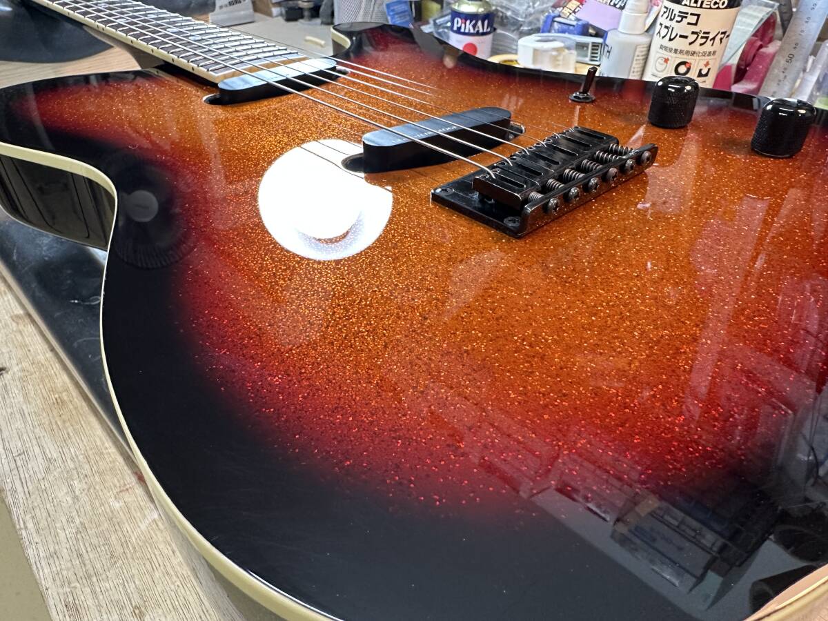 ・ボディトップは塗装を剥がし、ラメ塗装をしたのち3トーンサンバーストに仕上げました。