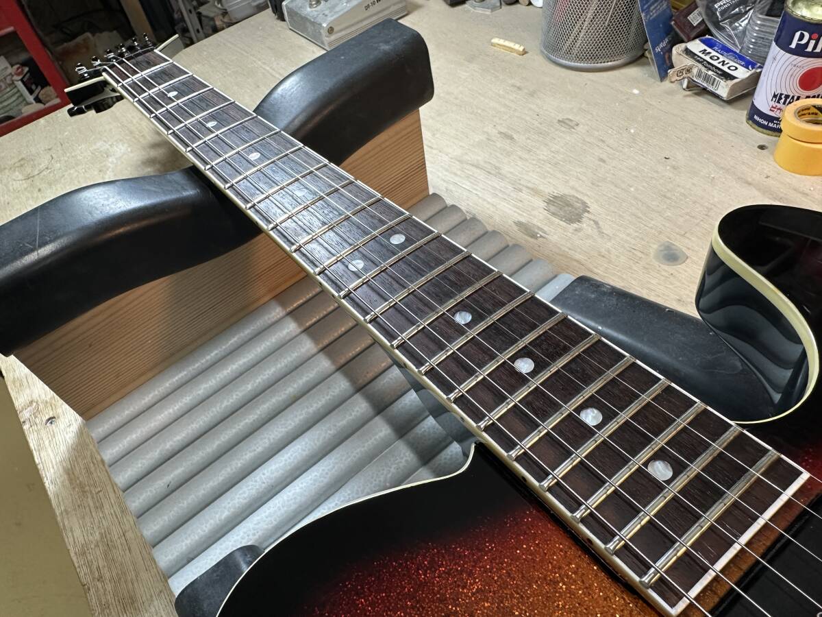 ・ネックはもともとスカーフジョイント部や指板に剥がれがありましたが、全て剥がし再接着後再塗装してフレットやパーツ以外の本体自体は新品同様に復活しております。