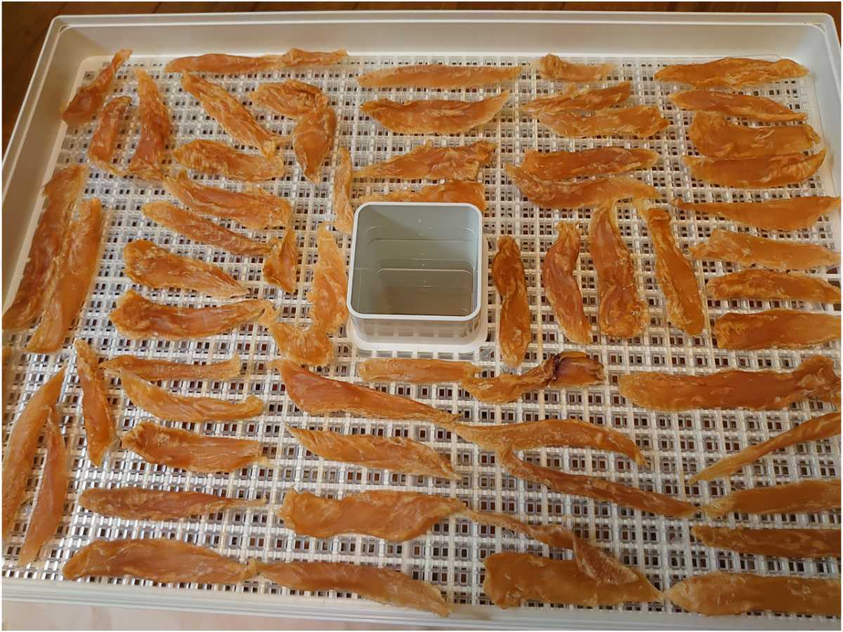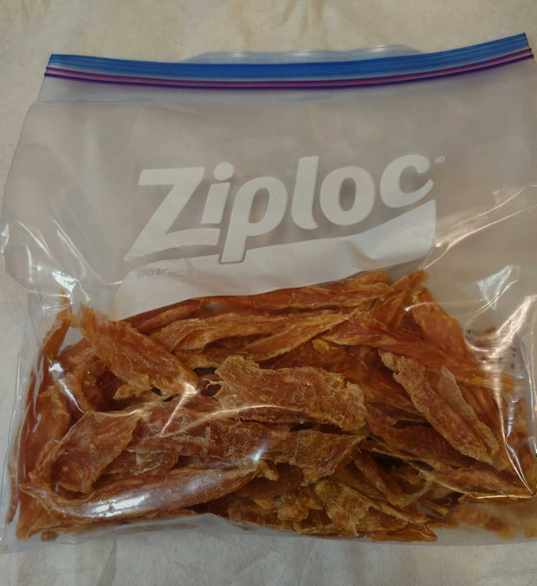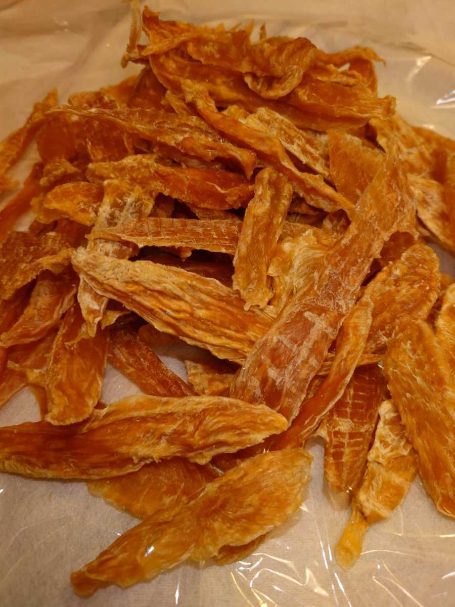 それならば自分で作ろうと思い、国産鶏ササミを自宅で食べやすい大きさにカットし乾燥させ、ジャーキーにしました。